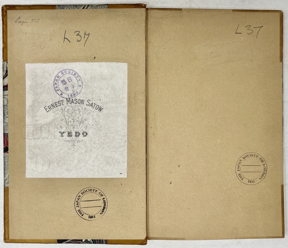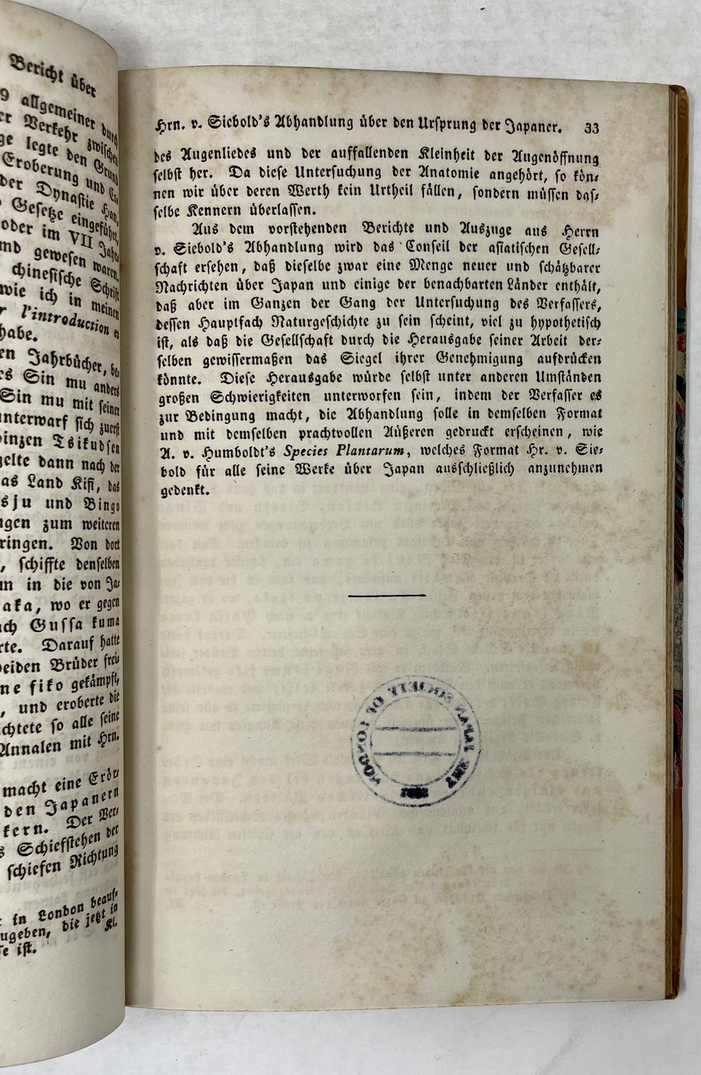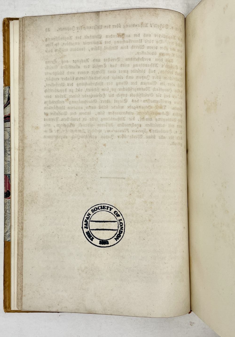 (Independently published? extracted from the same article at pp.321-353 of Annalen der Erd=, Völker- und Staatenkunde. 2. Berlin, 1830.)Exlibris Ernest Mason Satow (YEDO) / The Japan Society of London.