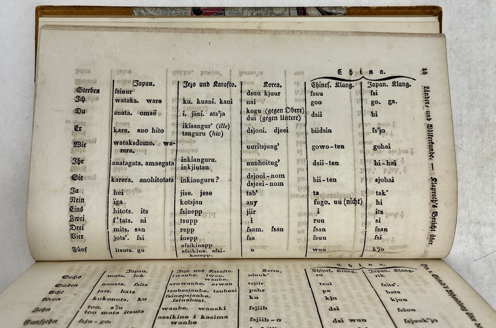 ドイツ語訳版『Annalen der Erd=, Völker- und Staatenkunde. 2.』(Berlin, 1830)の321ページから353ページにかけて掲載された同名の記事を独立して出版したものか。アーネスト・サトウ旧蔵本 / ロンドン日本協会旧蔵本 [1830年] [ベルリン刊]