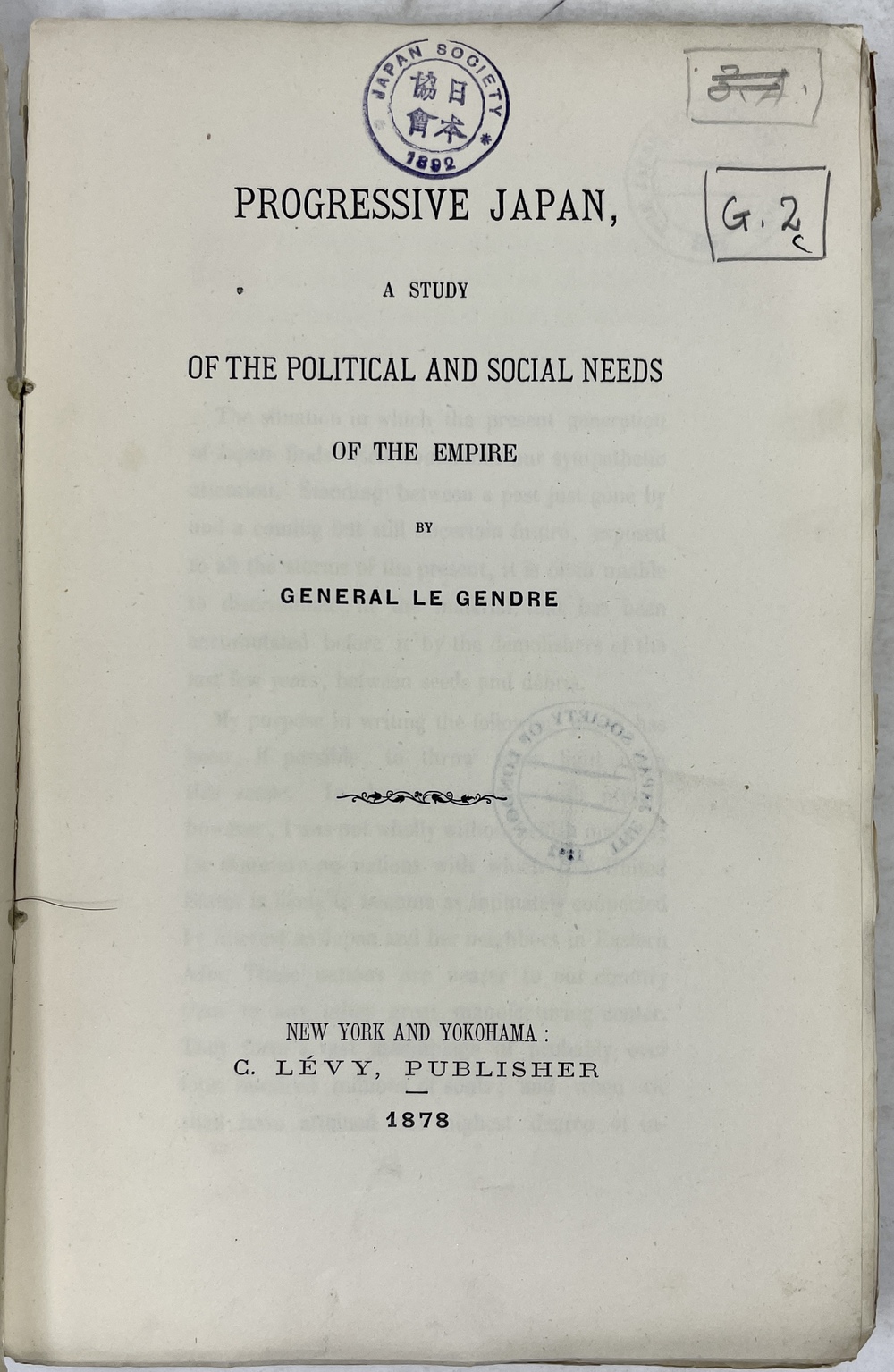 『発展途上にある日本:帝国の政治的、社会的に必要とされる諸点についての一考察』
