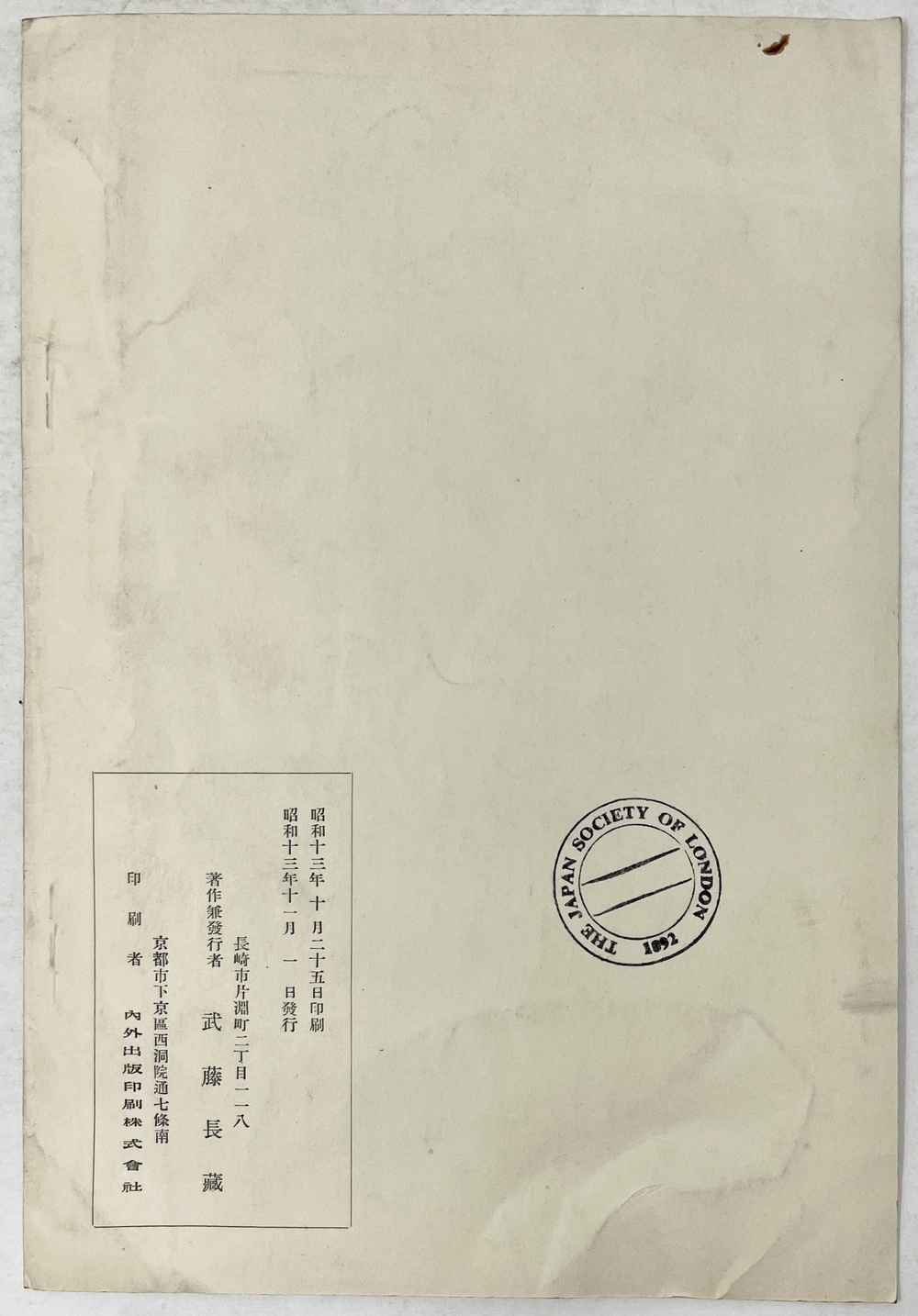 著者直筆献辞付、ロンドン日本協会旧蔵本 1938(昭和13)年 京都(内外出版印刷株式会社)刊