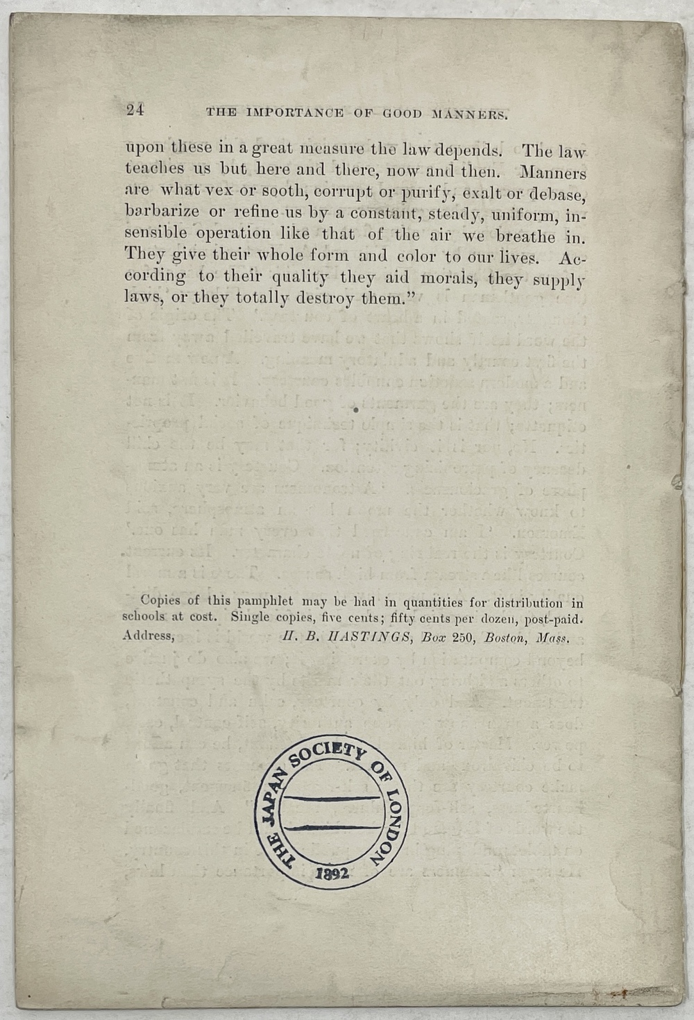 Exlibris The Japan Society of London.