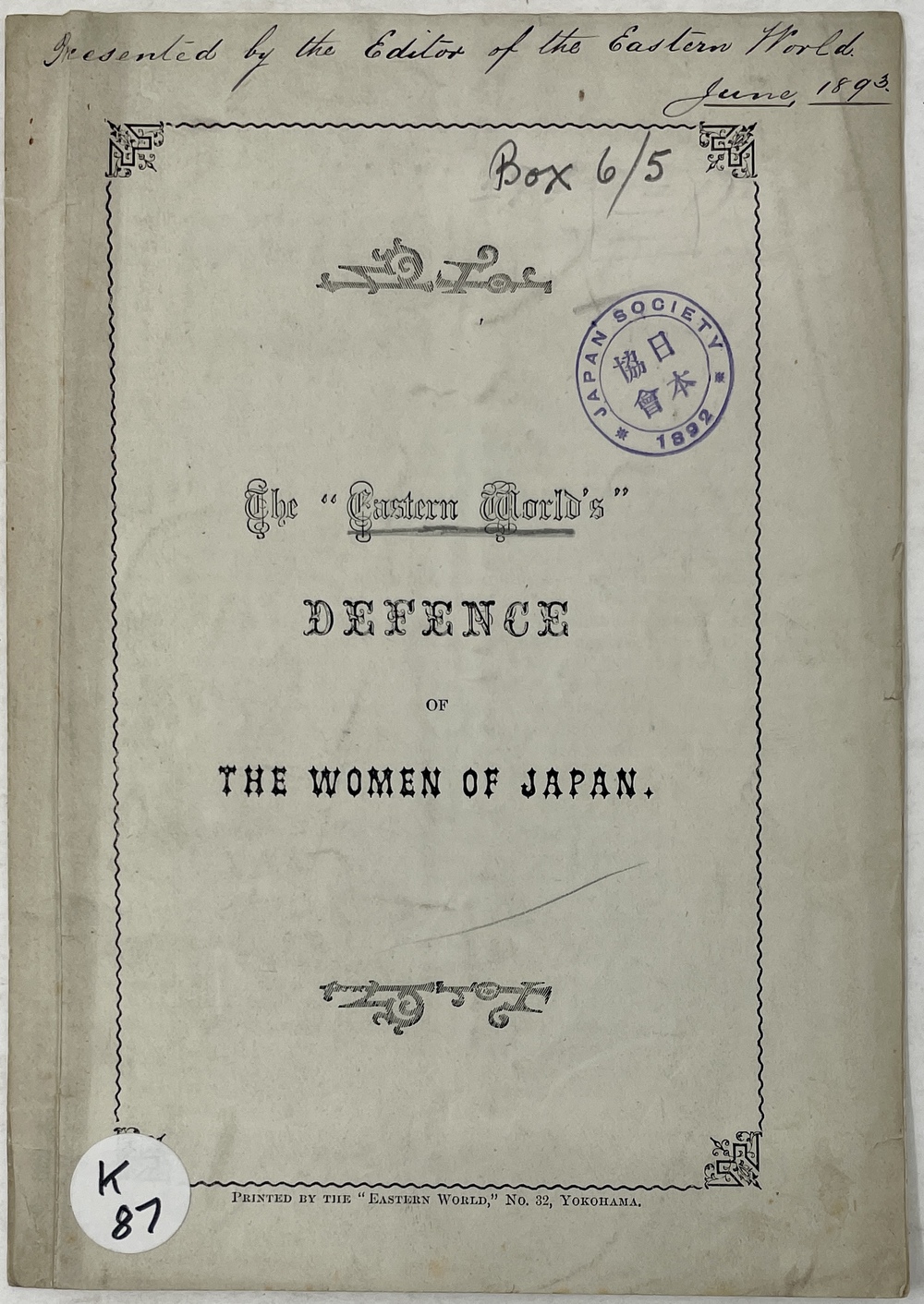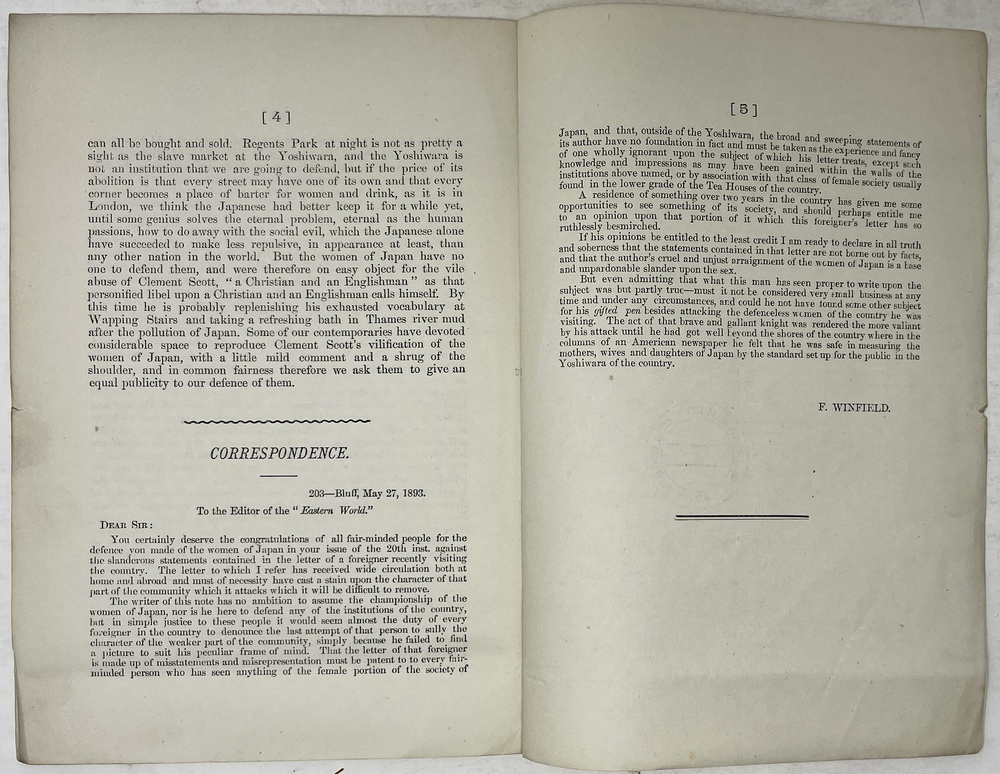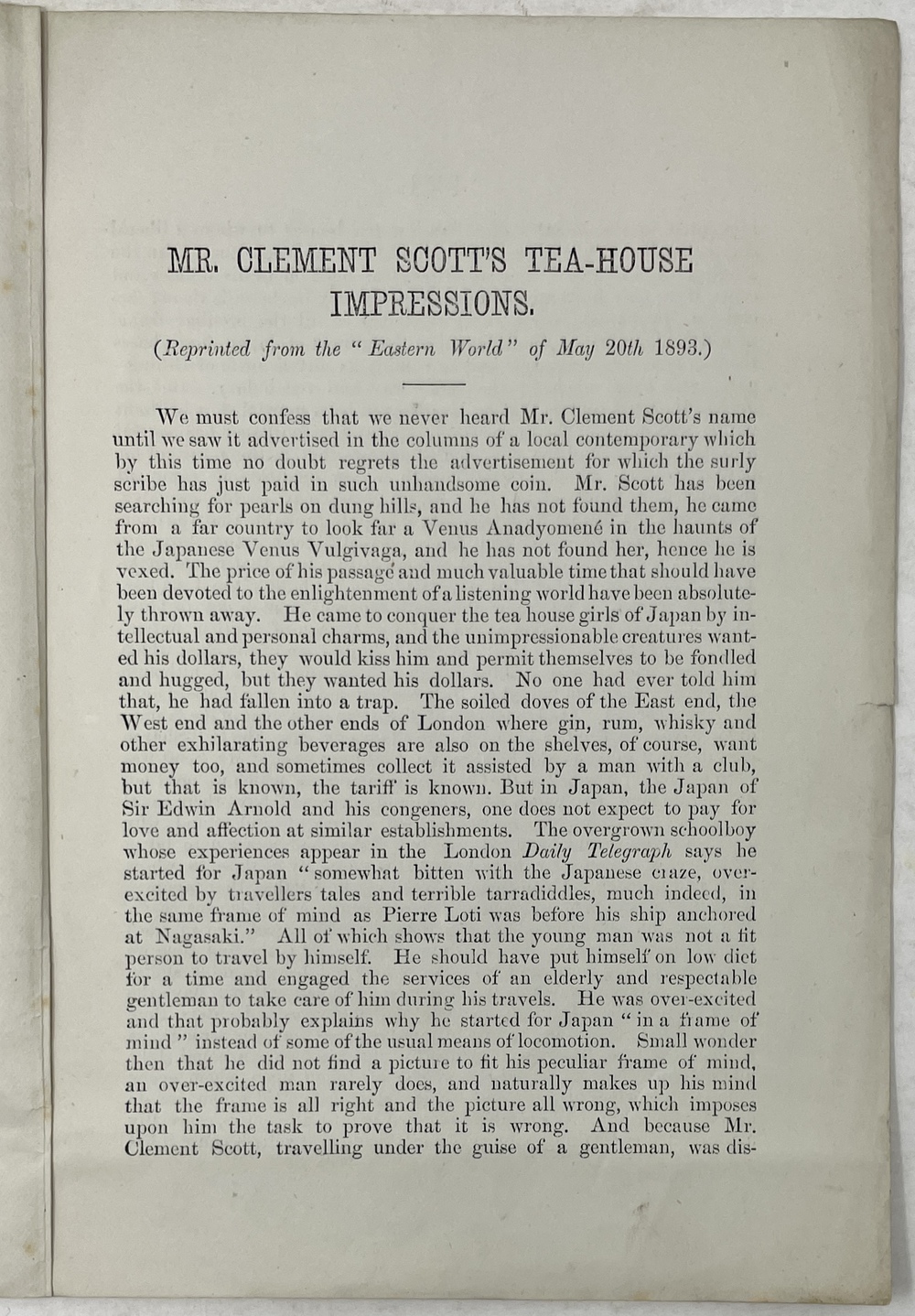 The “Eastern World’s” DEFENCE OF THE WOMEN OF JAPAN. MR. CLEMENT SCOTT’S TEA-HOUSE IMPRESSIONS. (Reprinted from the “Eastern Wrold” of May 20th 1893.)
