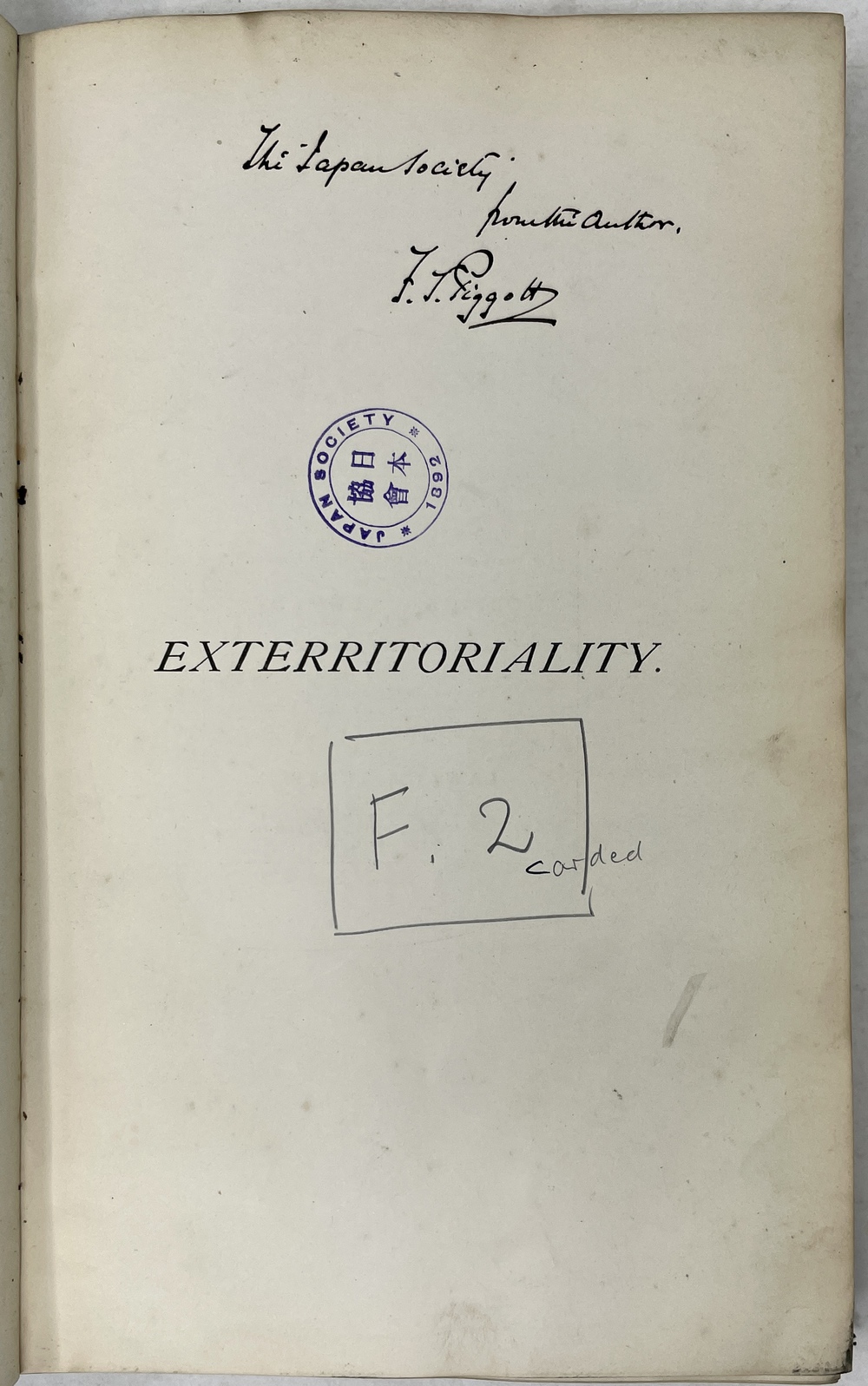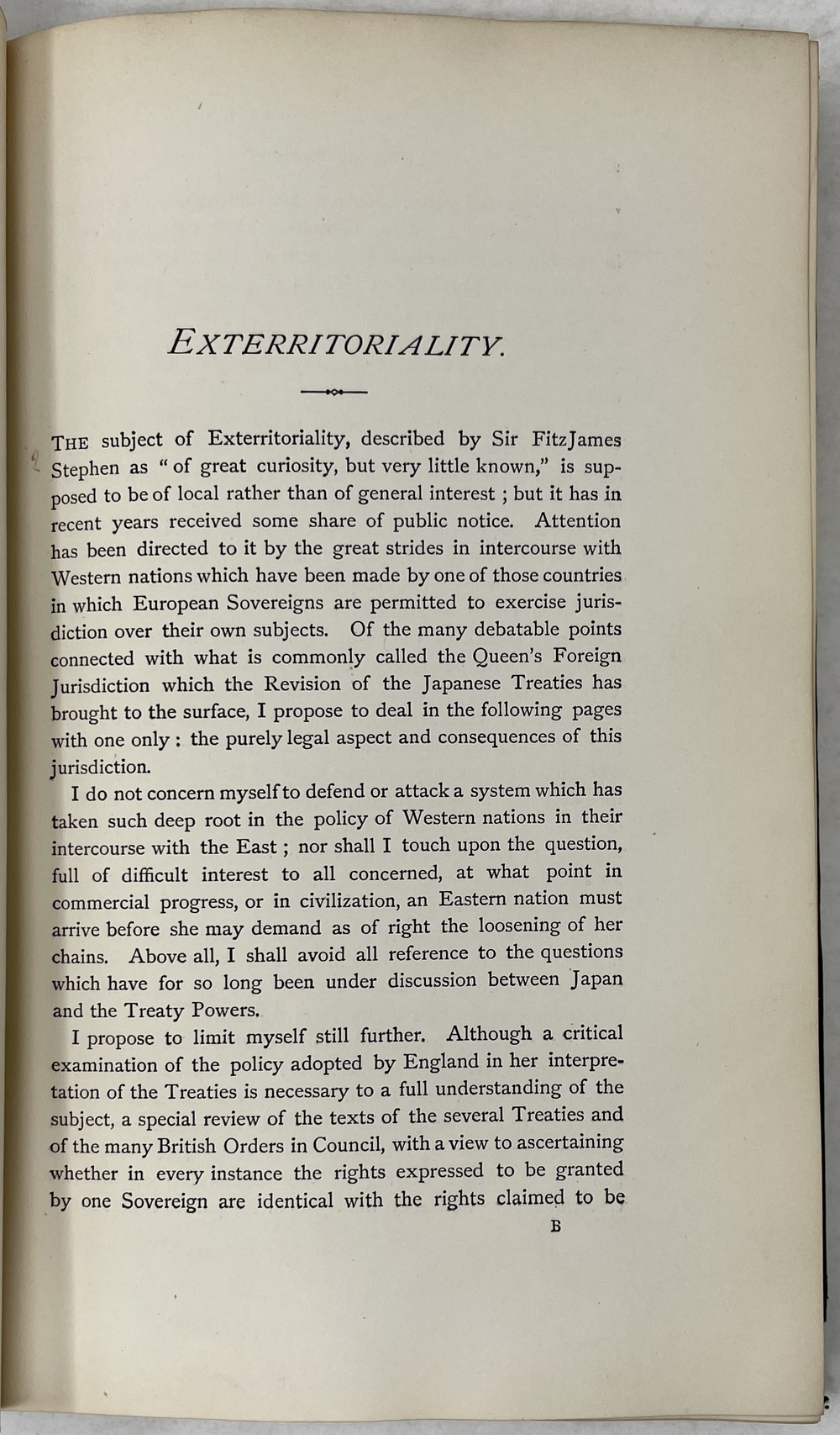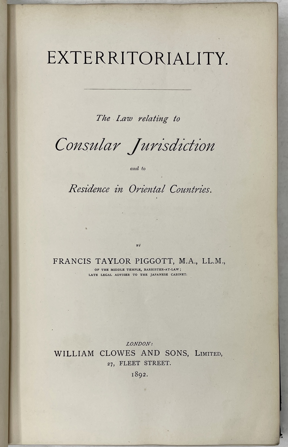 EXTERRITORIALITY. The Law relating to Consular Jurisdiction and to Residence in Oriental Countries.