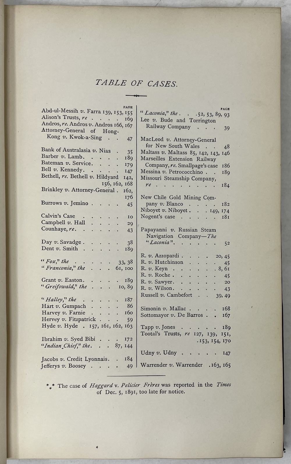 pp.[i(Half Title.)-iii(Title.)-v], vi-xiii, 1 leaf(Table of Cases), pp.[1], 2- 303,