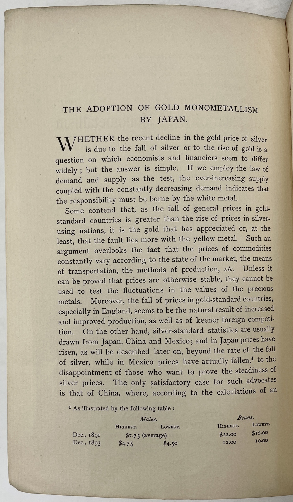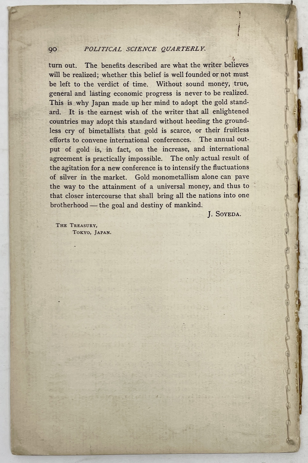 The Adoption of Gold Monometallism by Japan. (Reprinted from POLITICAL SCIENCE QUARTERLY, Vol. XIII, No.1)