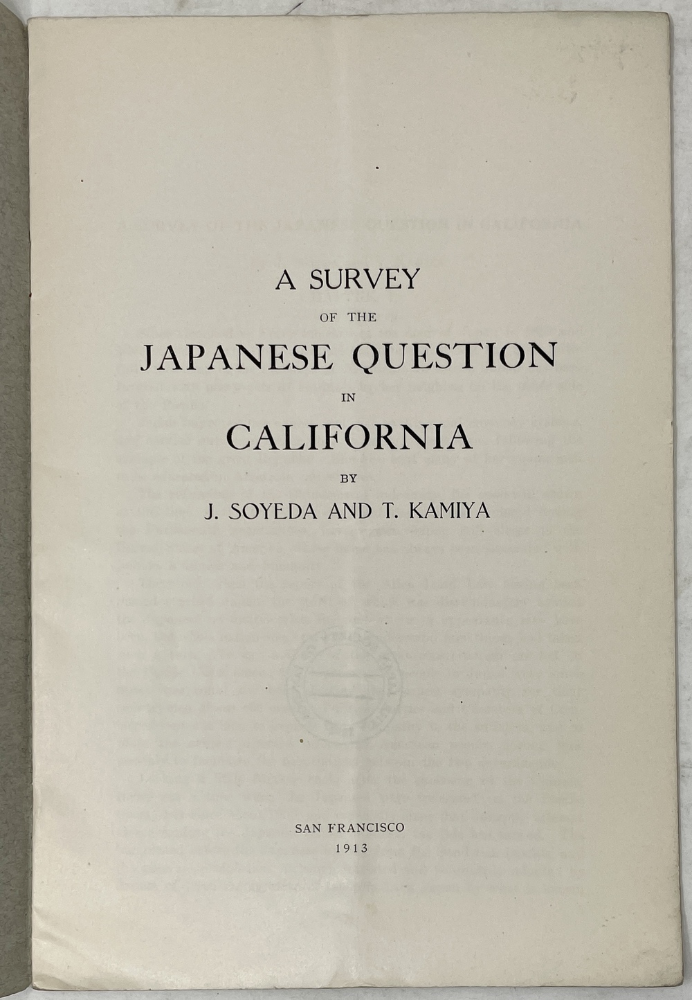 A SURVEY OF THE JAPANESE QUESTION IN CALIFORNIA.