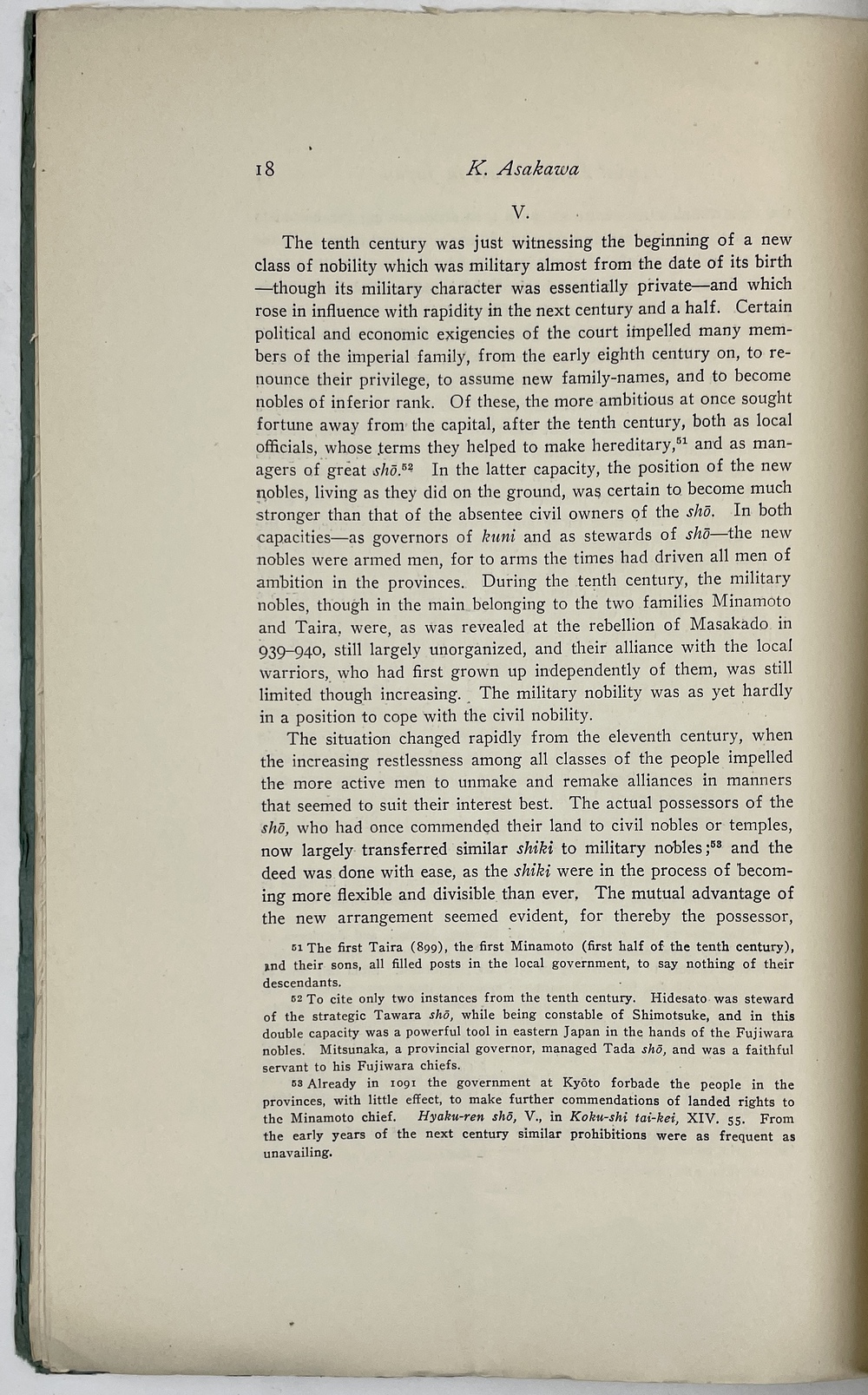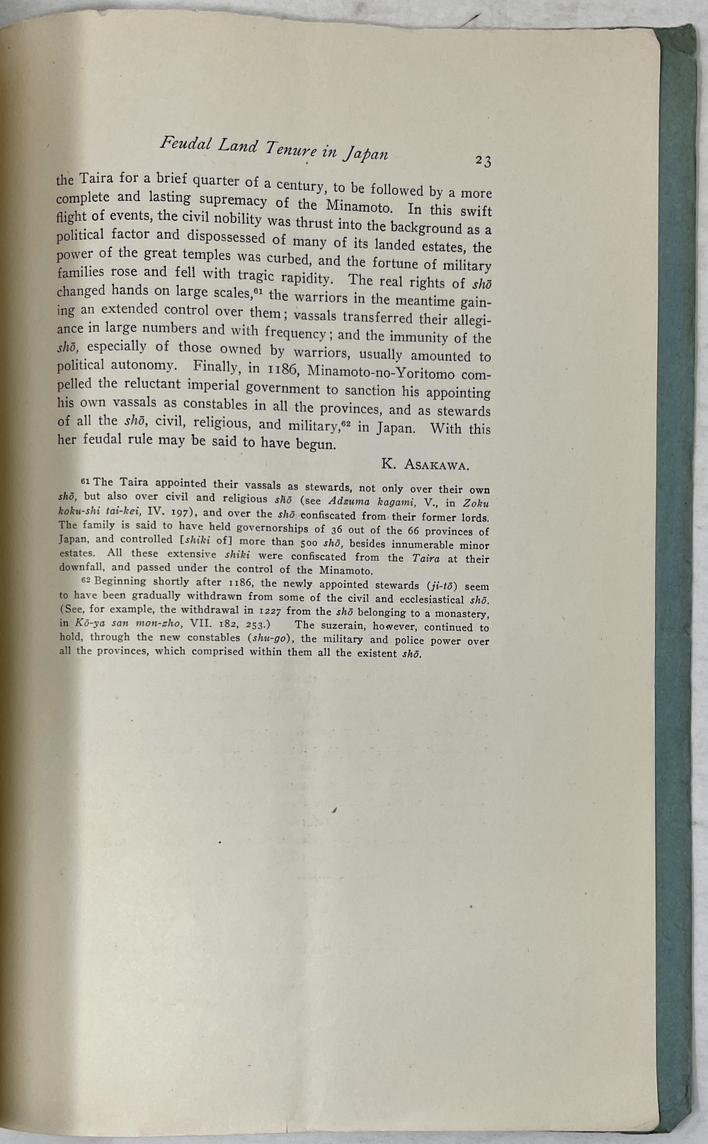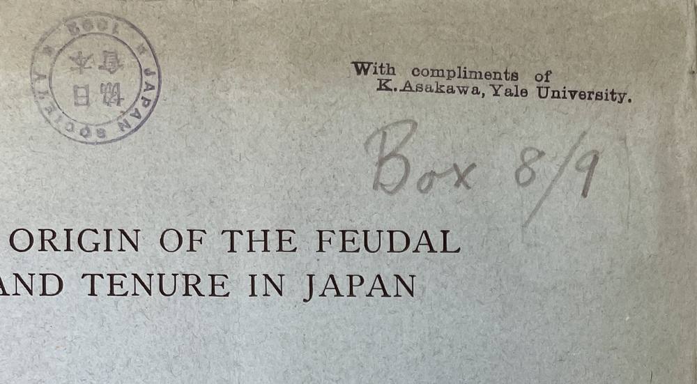 Author’s dedication copy (“With compliments of K. Asakawa, Yale University” , stamped), Exlibris The Japan Society of London.