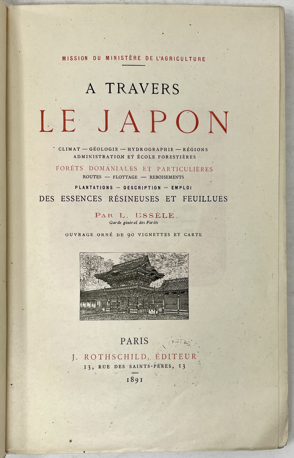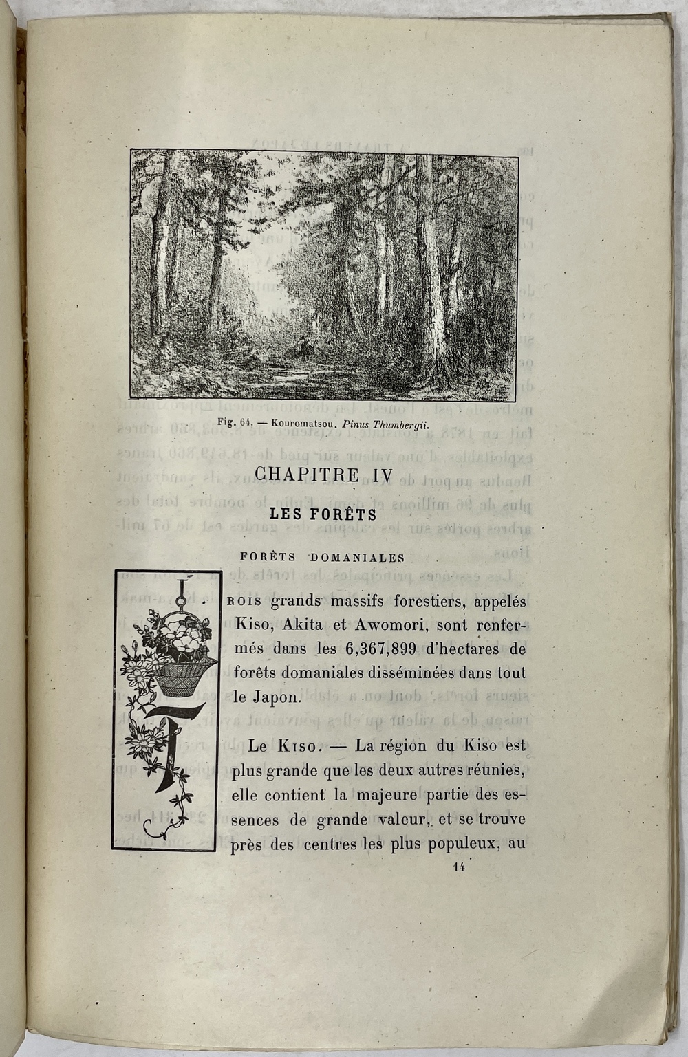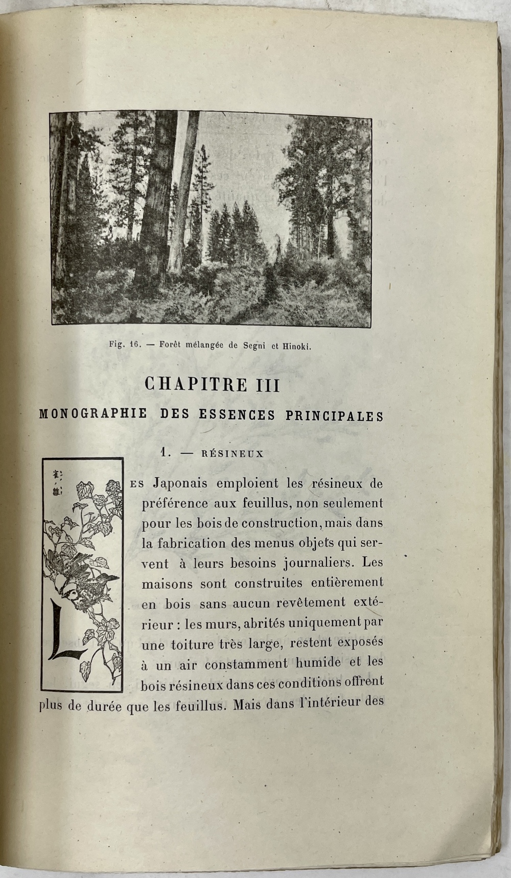 A TRAVERS LE JAPON. CLIMAT-GÉOLOGIE-HYDROGRAPHIE-RÉGIONS ADMINISTRATION et ÉCOLE FORESTIÈRES FORÊTS DOMANIALES ET PARTICULIERES ROUTES - FLOTTAGE - REBOISEMENTS PLANTATIONS - DESCRIPTION - EMPLOI DES ESSENCES RÉSINEUSES ET FEUILLUES…