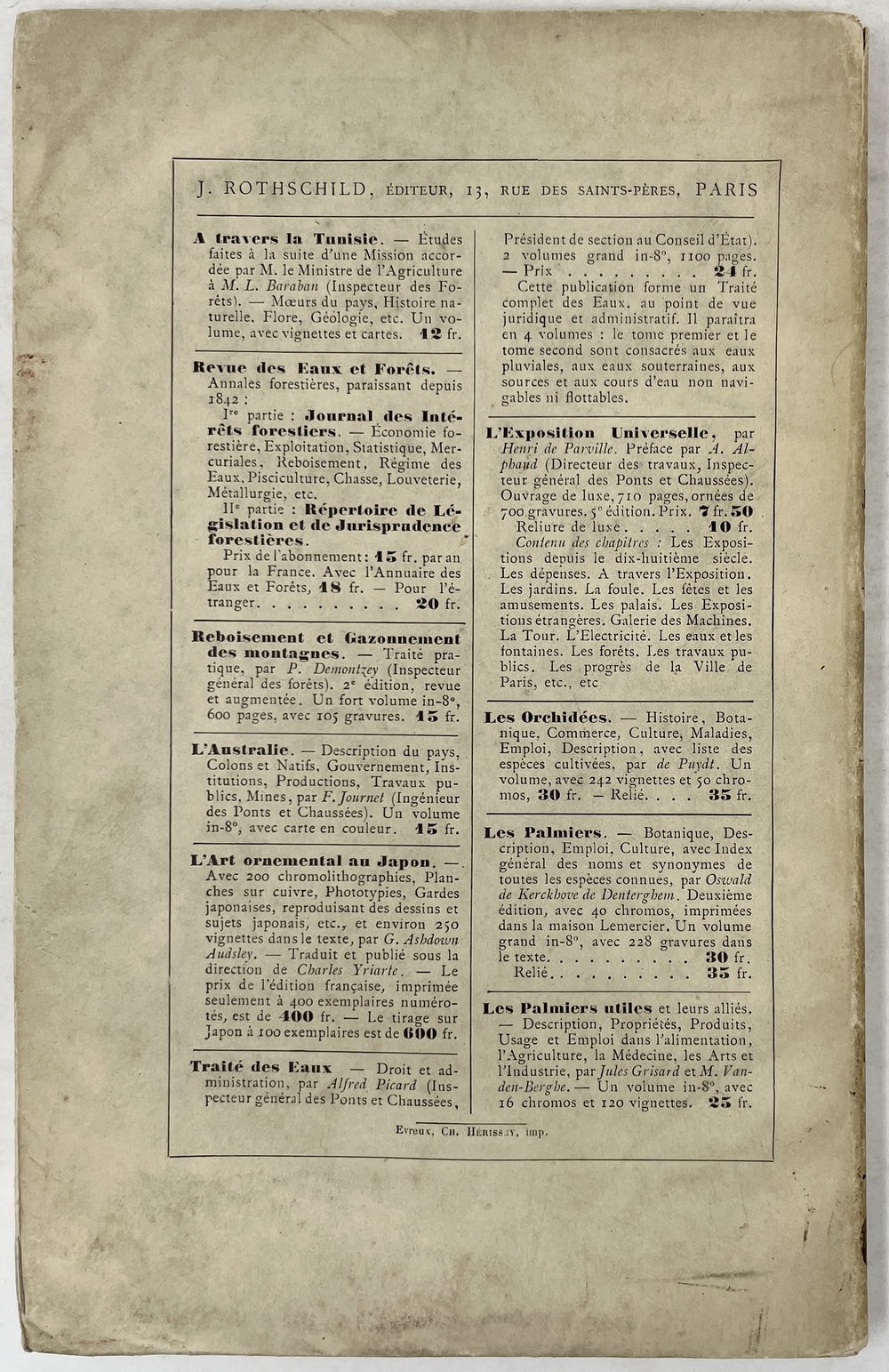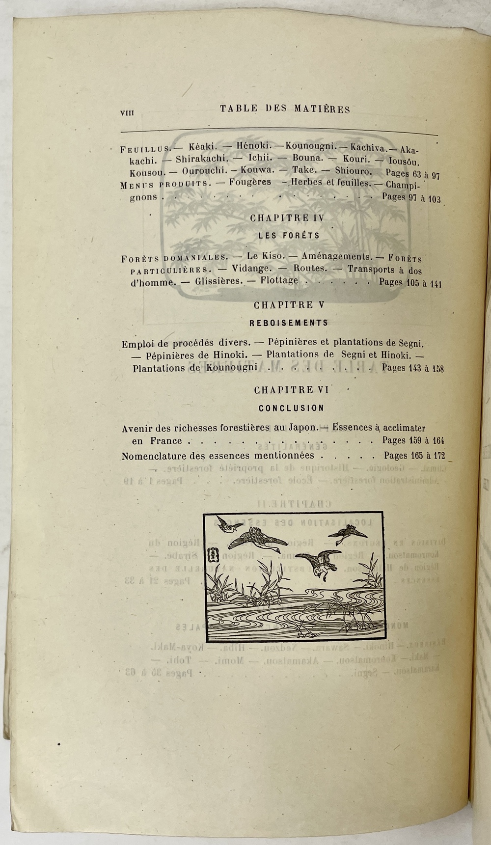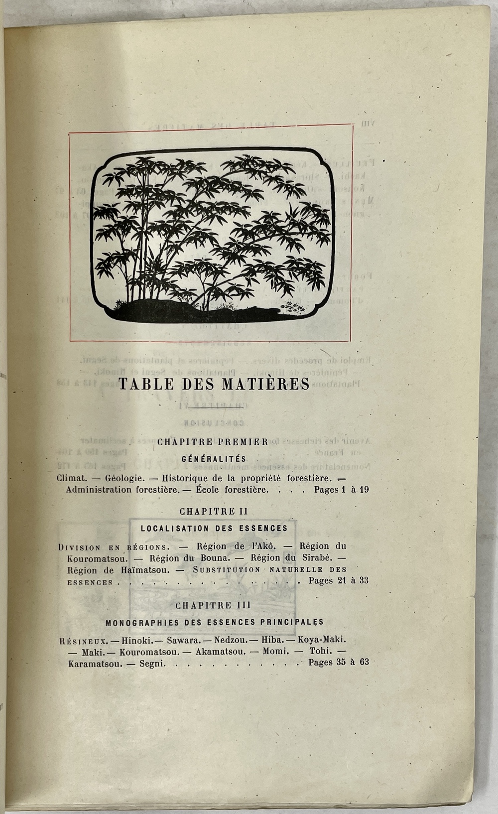 A TRAVERS LE JAPON. CLIMAT-GÉOLOGIE-HYDROGRAPHIE-RÉGIONS ADMINISTRATION et ÉCOLE FORESTIÈRES FORÊTS DOMANIALES ET PARTICULIERES ROUTES - FLOTTAGE - REBOISEMENTS PLANTATIONS - DESCRIPTION - EMPLOI DES ESSENCES RÉSINEUSES ET FEUILLUES…