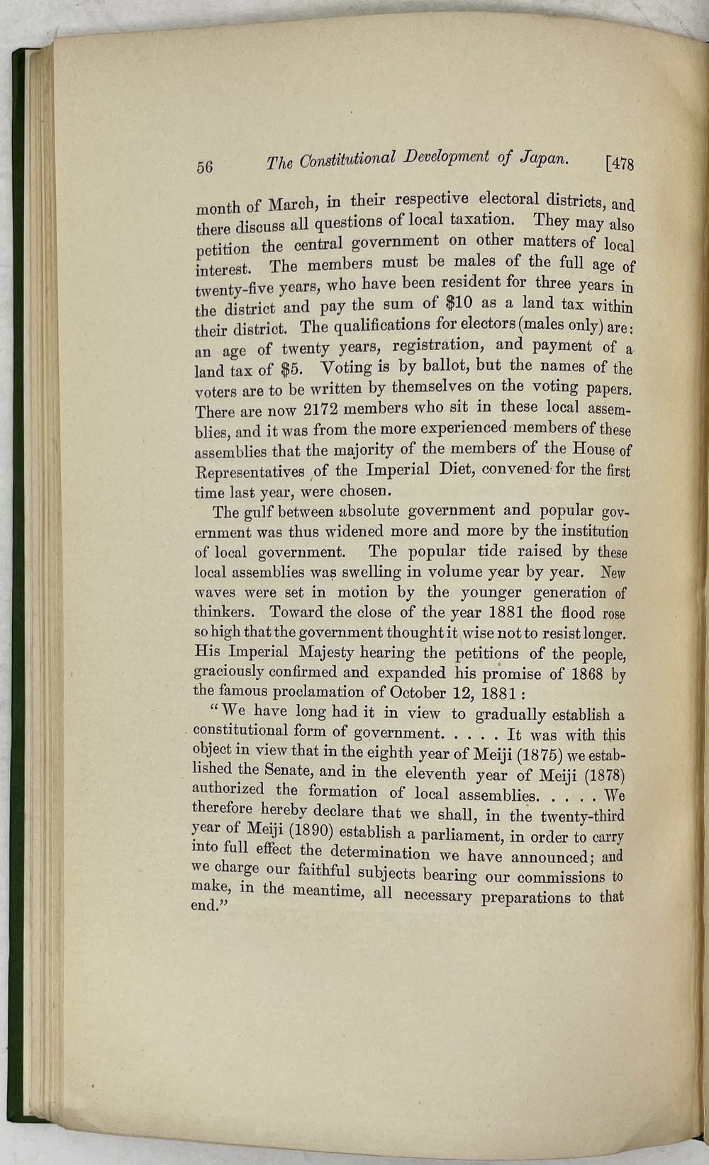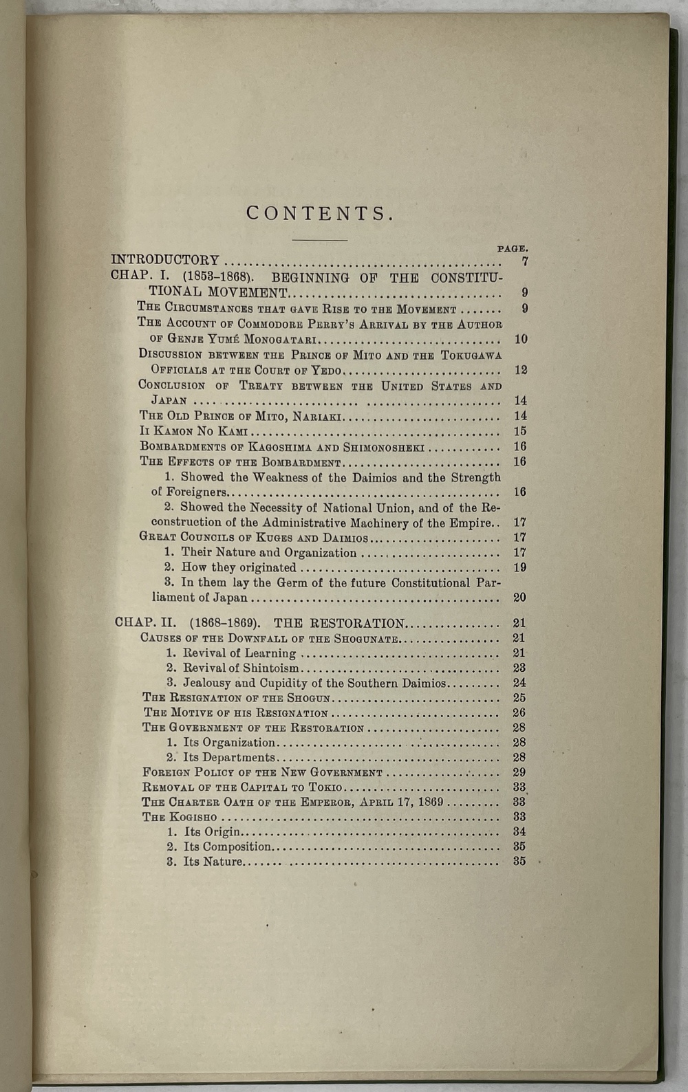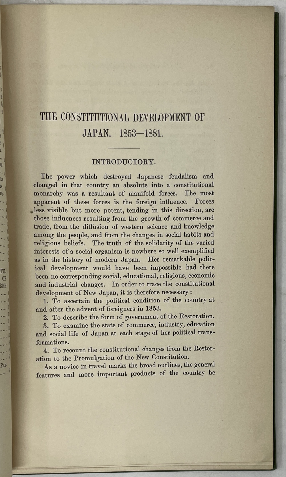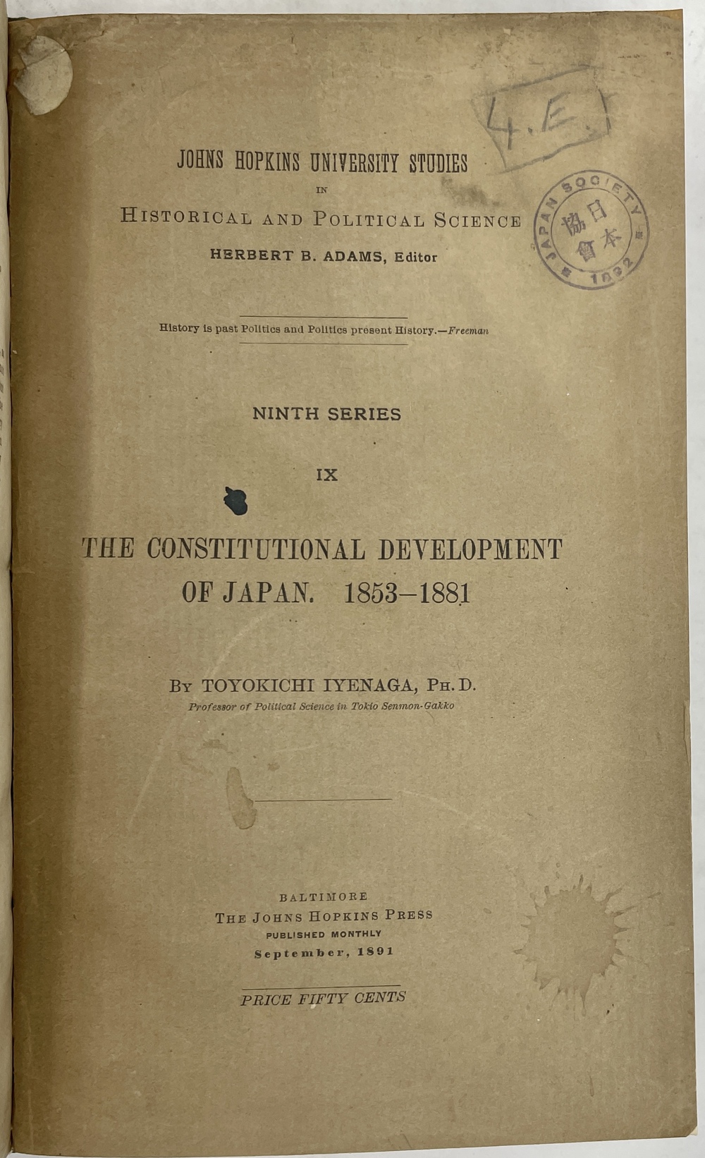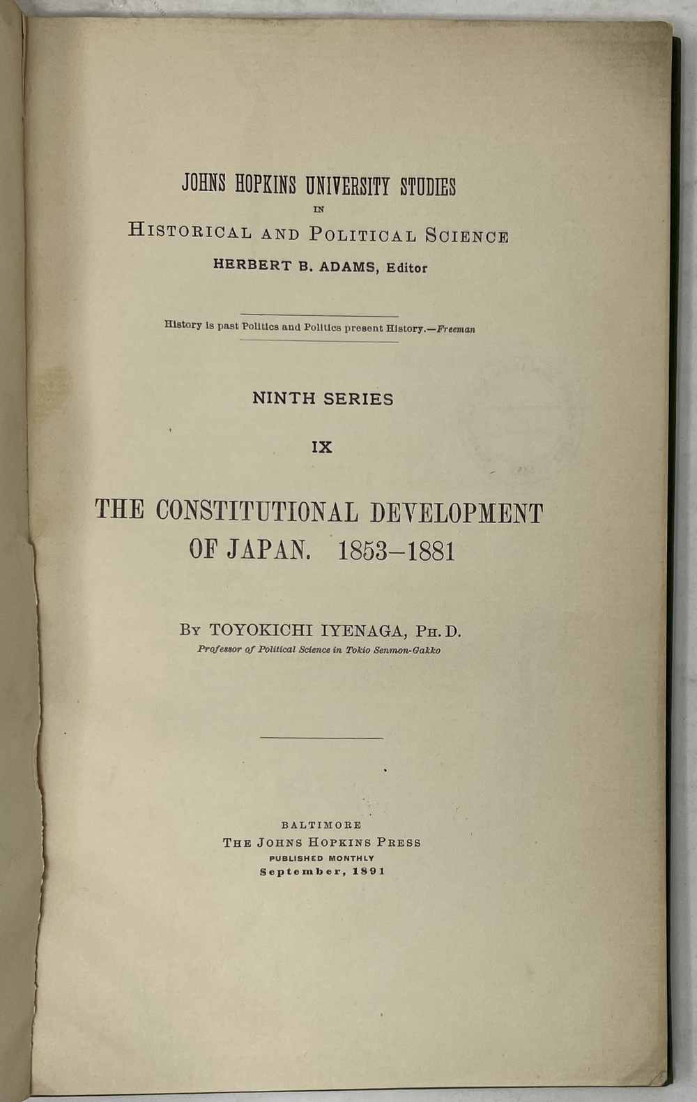 THE CONSTITUTIONAL DEVELOPMENT OF JAPAN. 1853-1881. (JOHNS HOPKINS UNIVERSITY STUDIES IN HISTORICAL AND POLITICAL SCIENCE…NINTH SERIES IX)