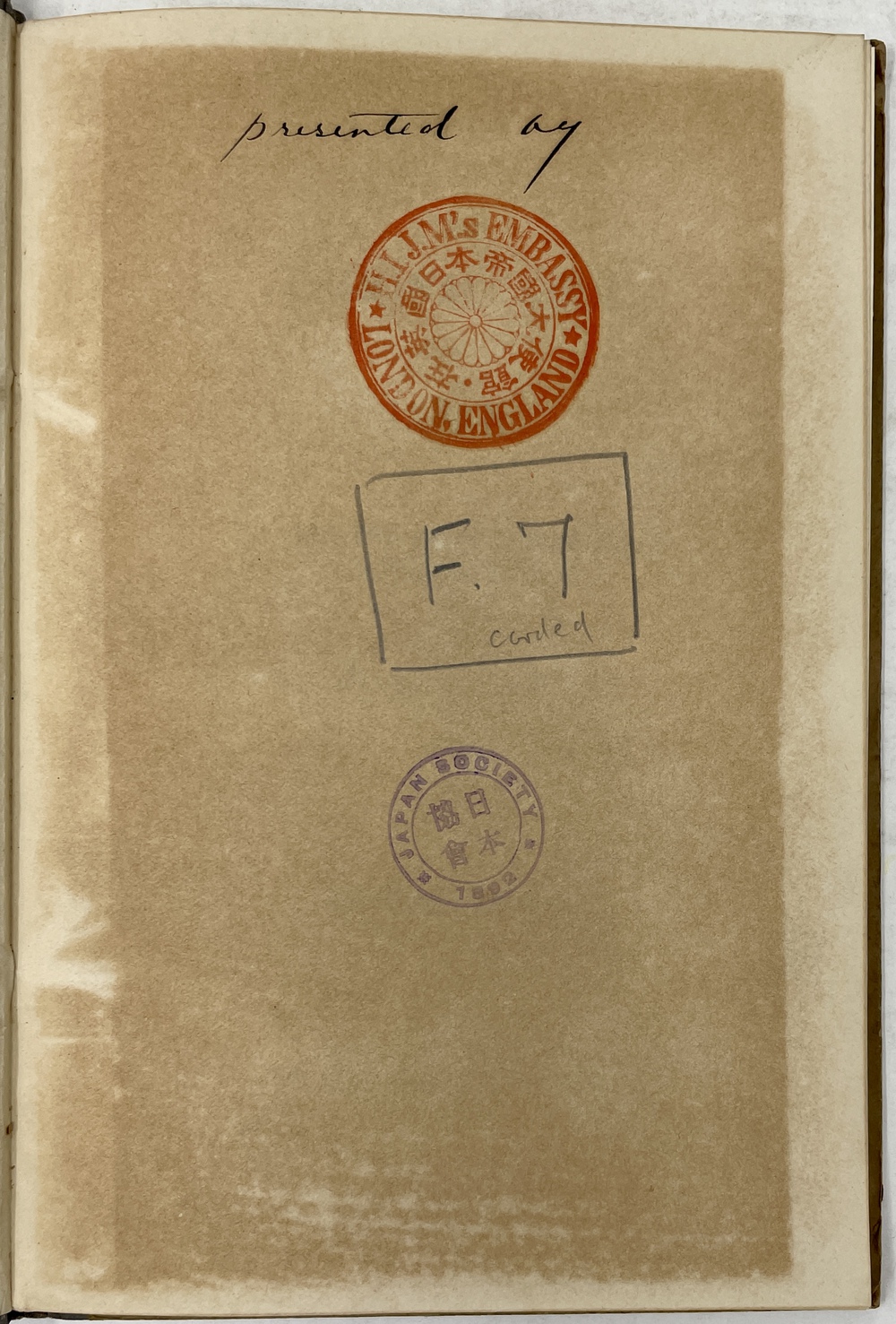 在英日本大使館からロンドン日本協会への贈呈本 1907(明治40)年 横浜刊