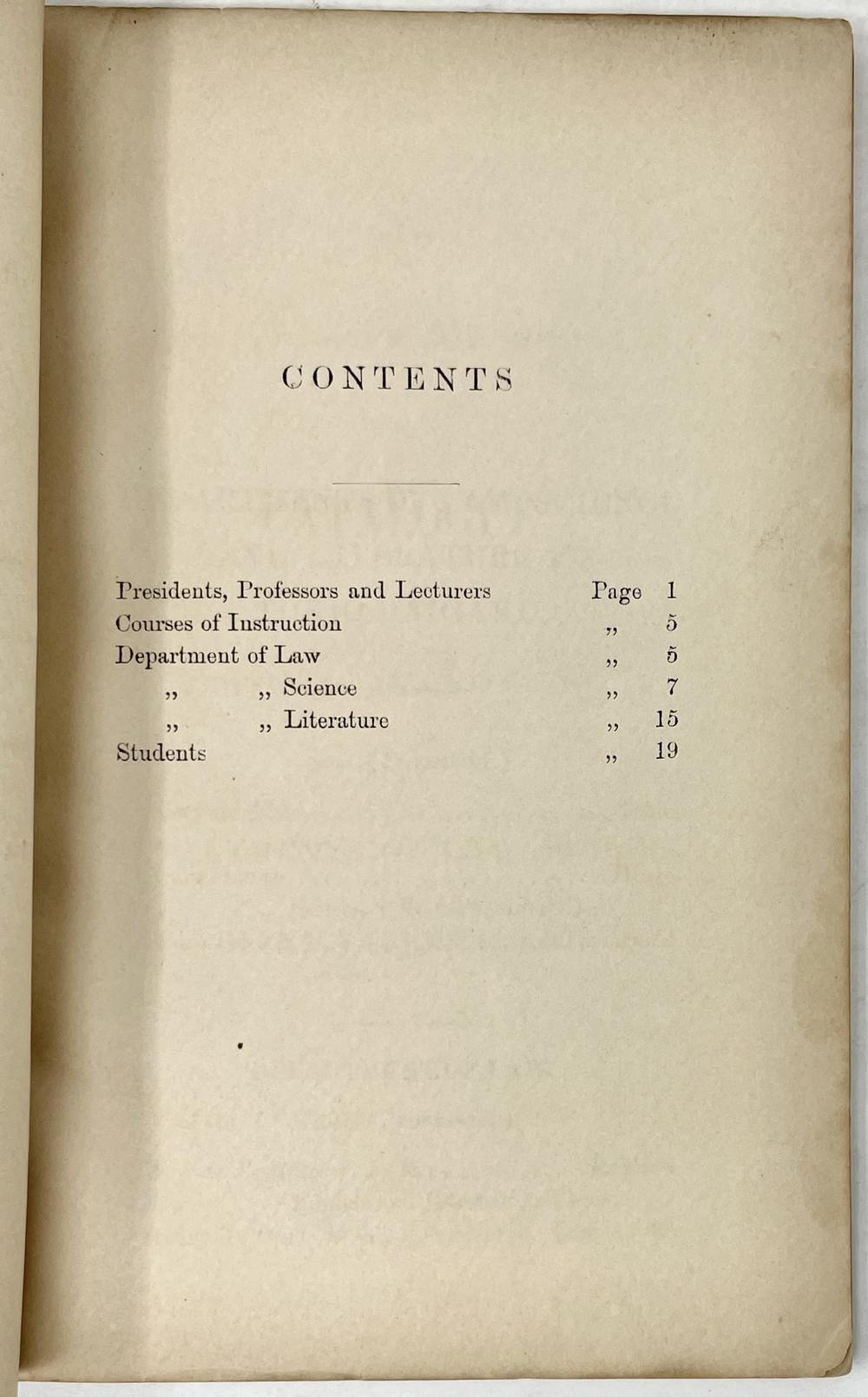 CATALOGUE OF THE OFFICERS AND STUDENTS OF THE DEPARTMENTS OF LAW, SCIENCE, AND LITERATURE WITH A STATEMENT OF THE COURSES OF INSTRUCTION.