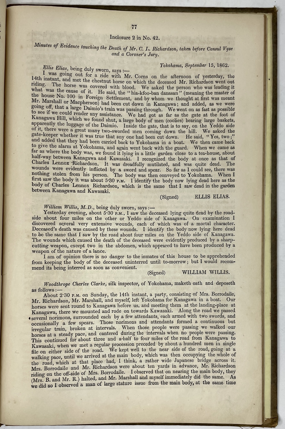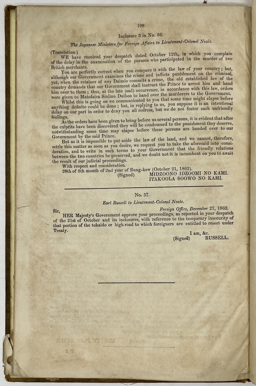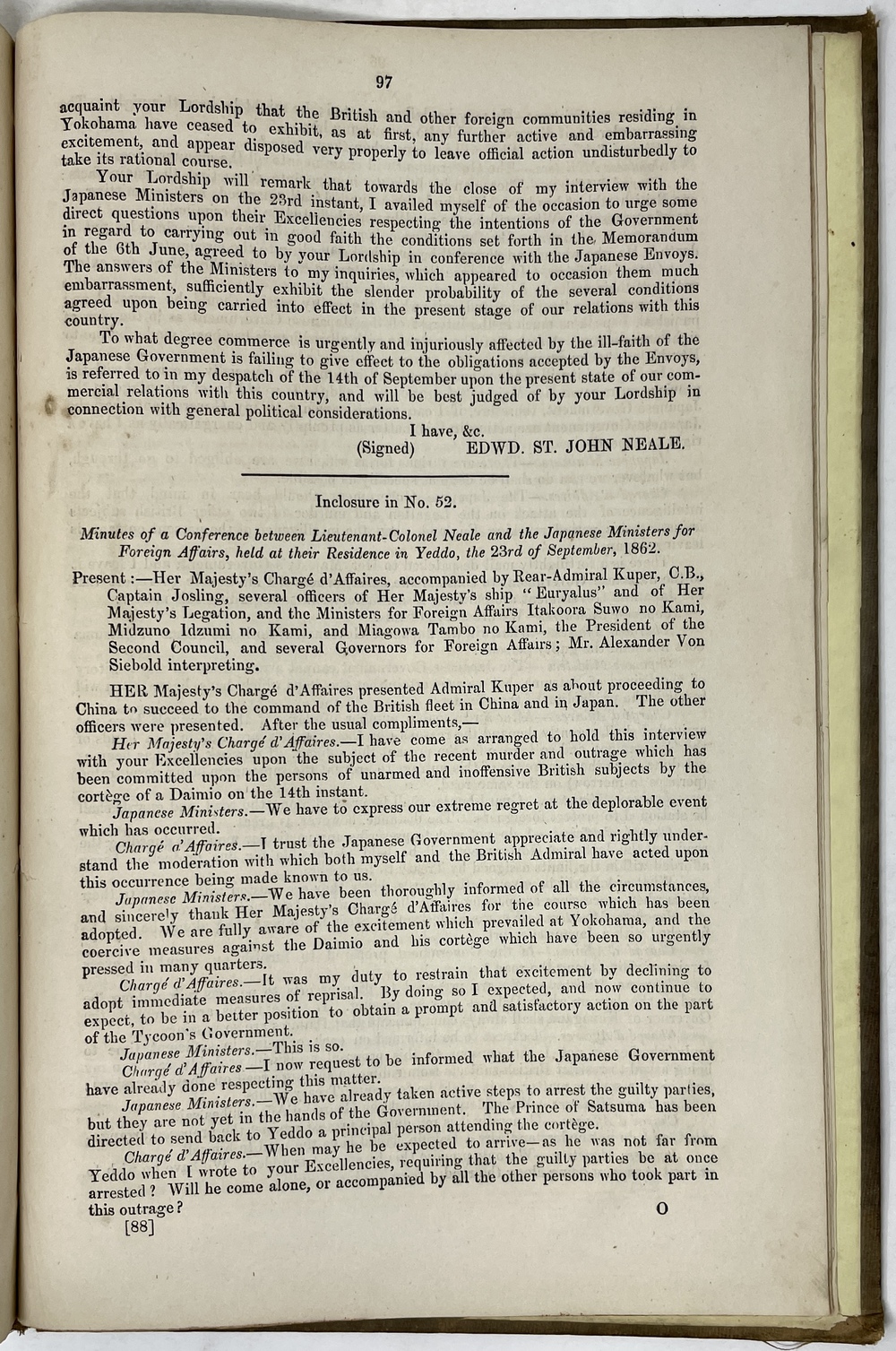 Both houses of Parliament. / Namamugi Incident / Margaret Watson Borradail / Gustave Duchesne, Prince de Bellecourt / John Neale.