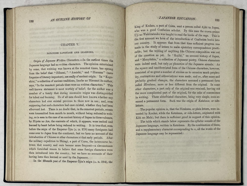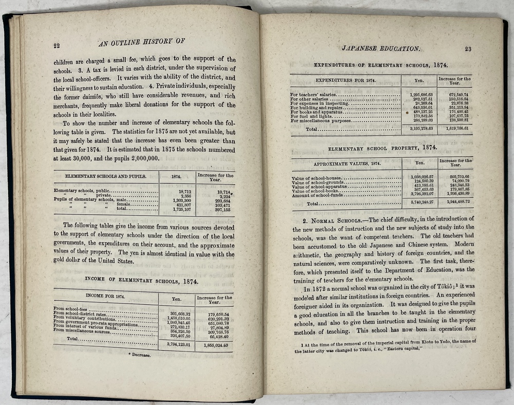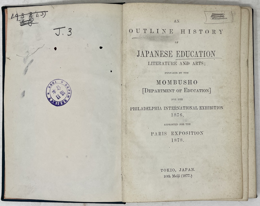 AN OUTLINE HISTORY OF JAPANESE EDUCATION LITERATURE AND ARTS; PREPARED…FOR THE PHILADELPHIA INTERNATIONAL EXHIBITION 1876, REPRINTED FOR THE PARIS EXPOSITION 1878.