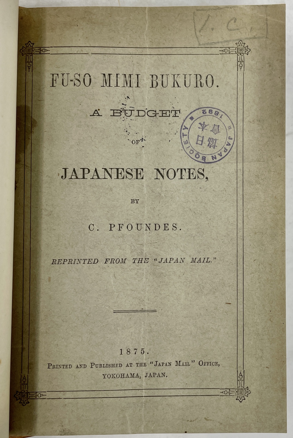 FU-SO MIMI BUKURO. A BUDGET OF JAPANESE NOTES.