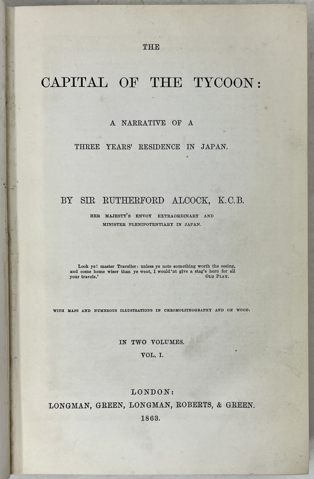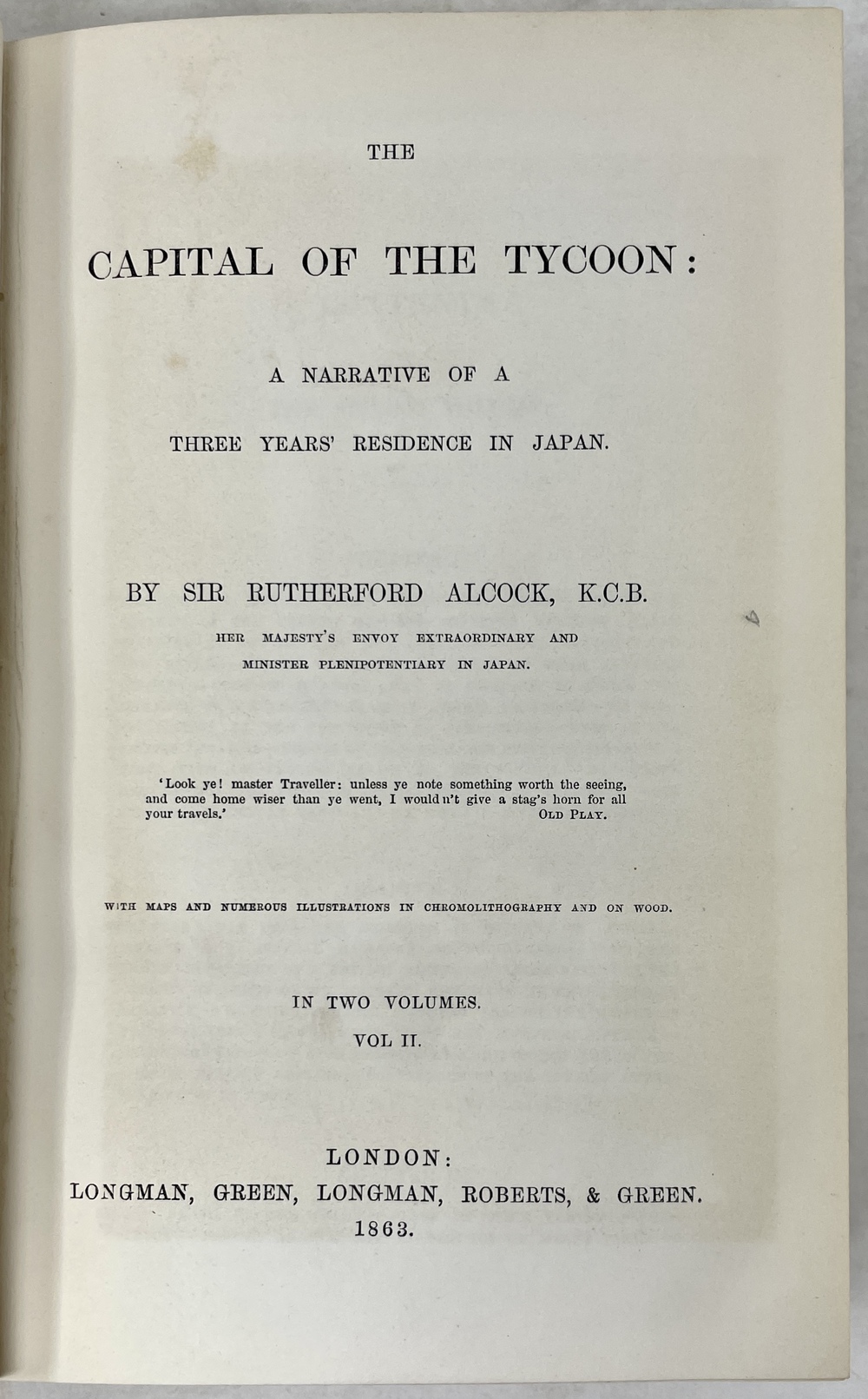 THE CAPITAL OF THE TYCOON: A NARRATIVE OF A THREE YEARS’ RESIDENCE IN JAPAN. WITH MAPS AND NUMEROUS ILLUSTRATIONS IN CHROMOLITHOGRAPHY AND ON WOOD. IN TWO VOLUMES.