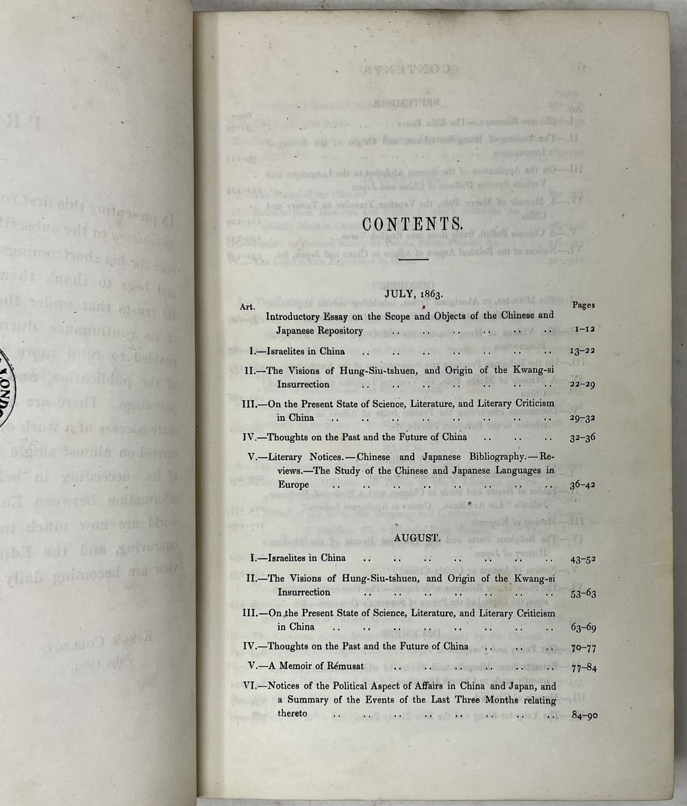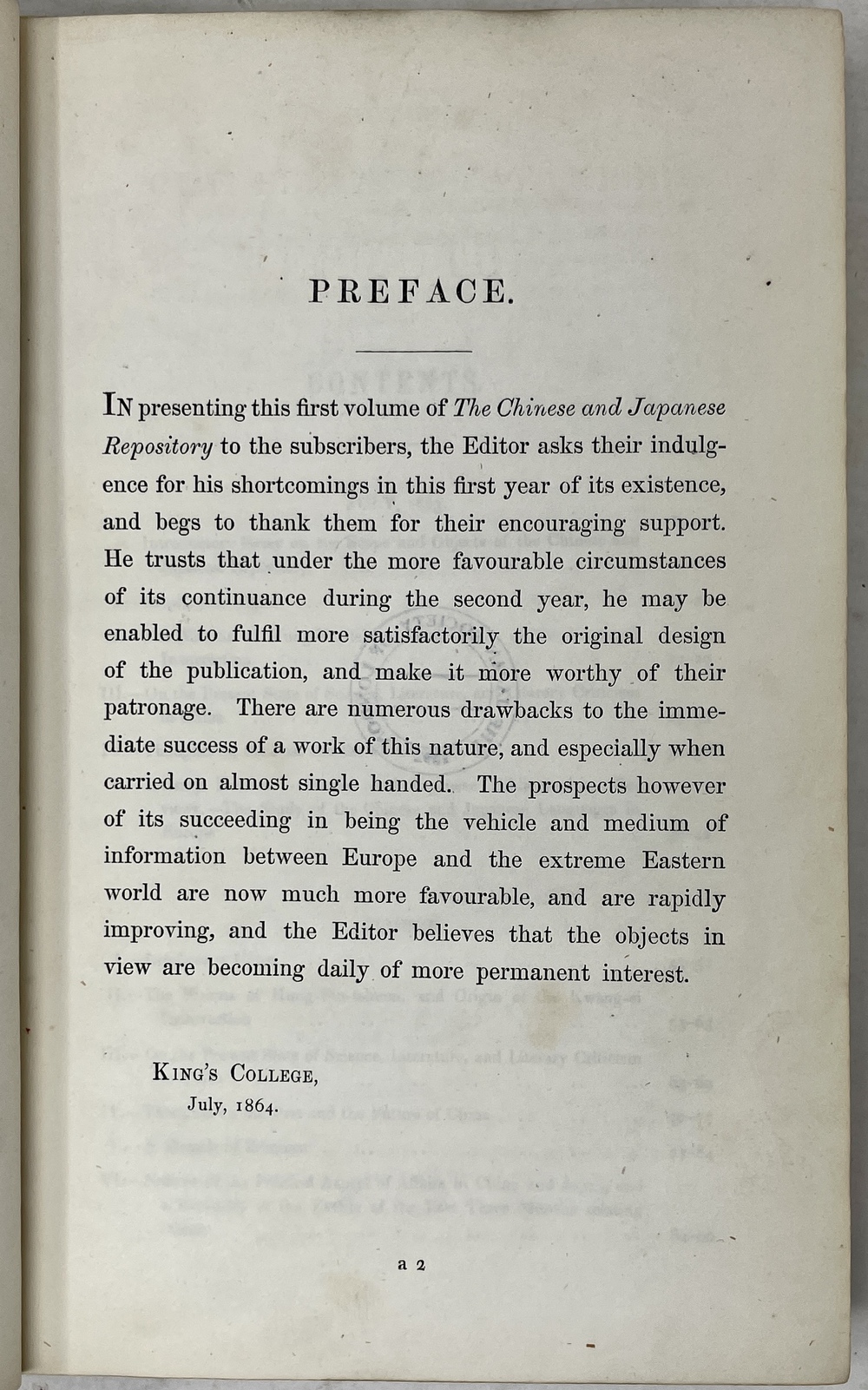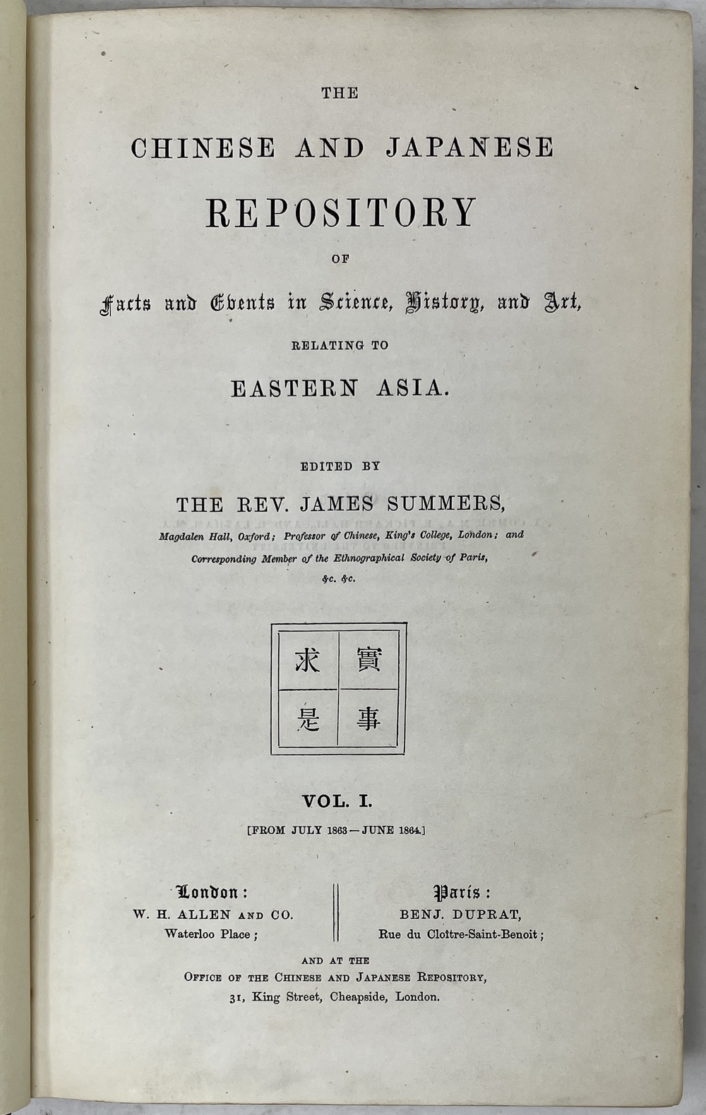 THE CHINESE AND JAPANESE REPOSITORY OF Facts and Events in Science, History, and Art, RELATING TO EASTERN ASIA. VOL. I [FROM JULY 1863 - JUNE 1864]