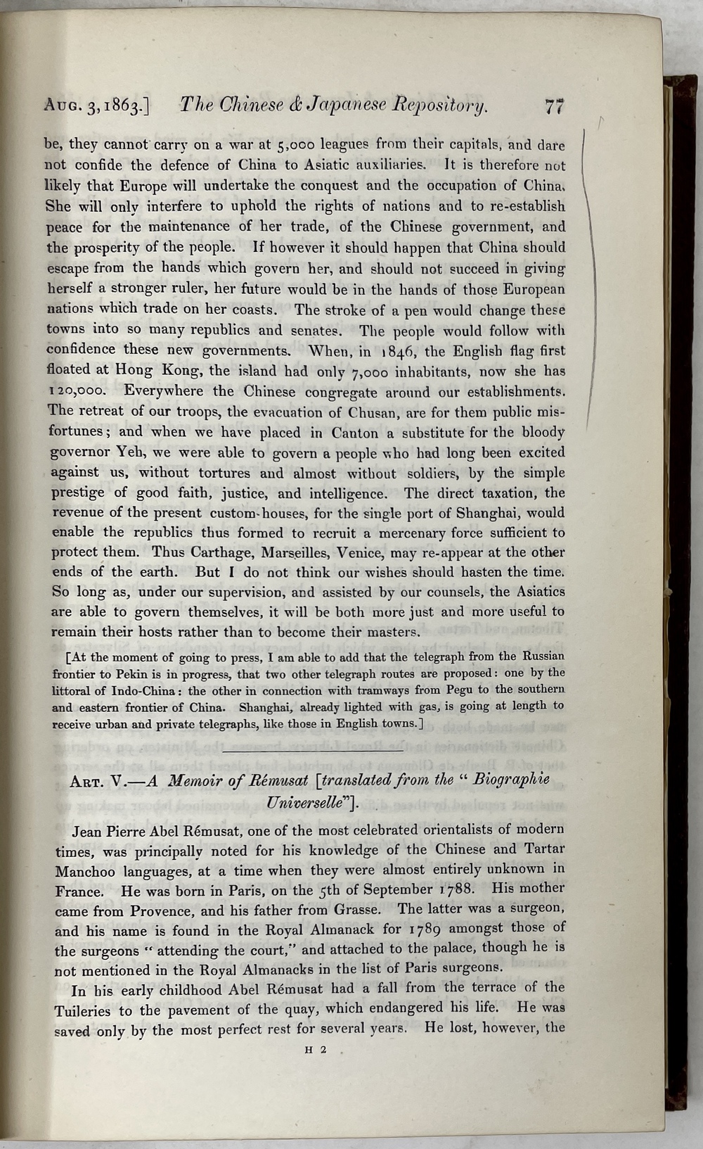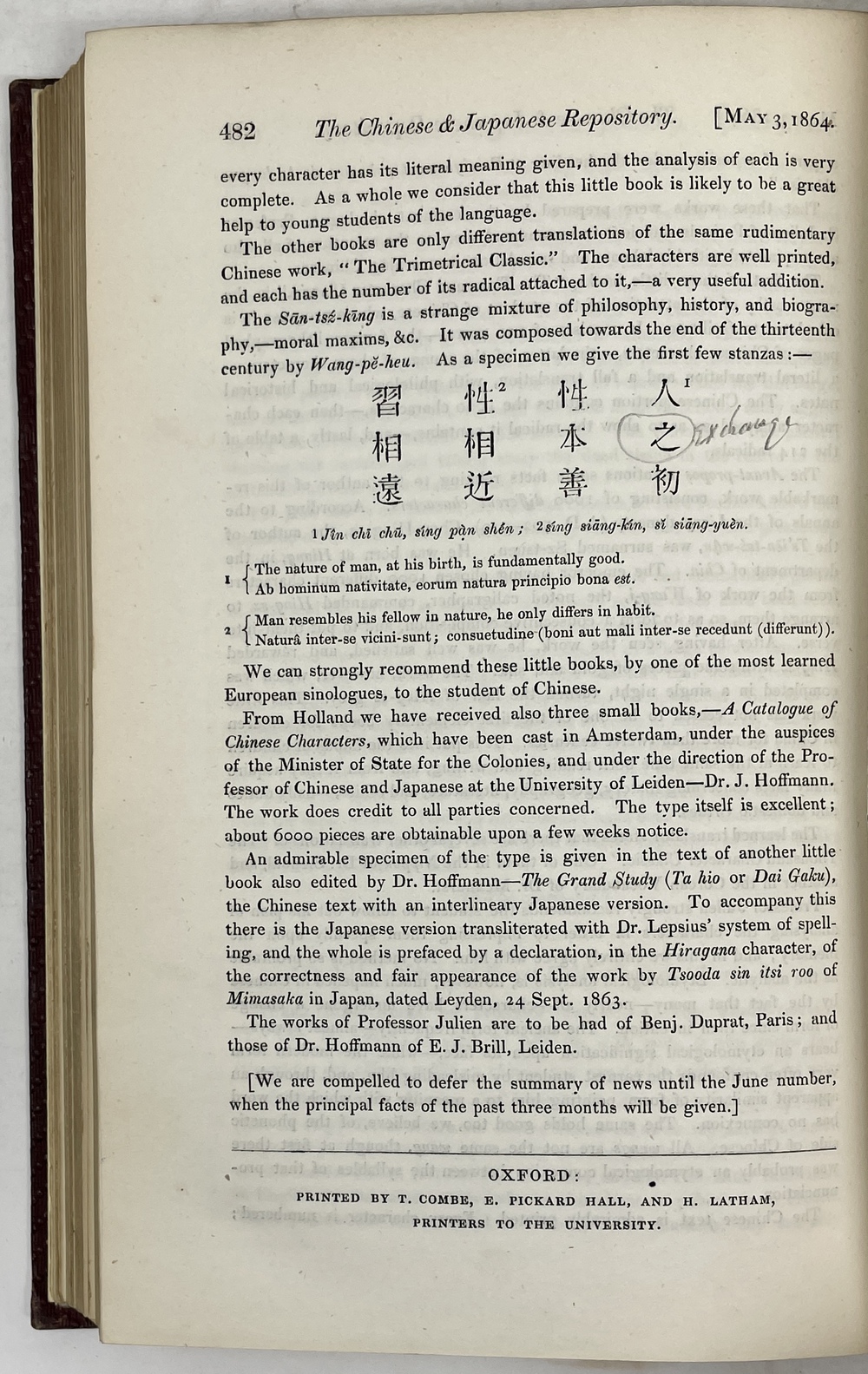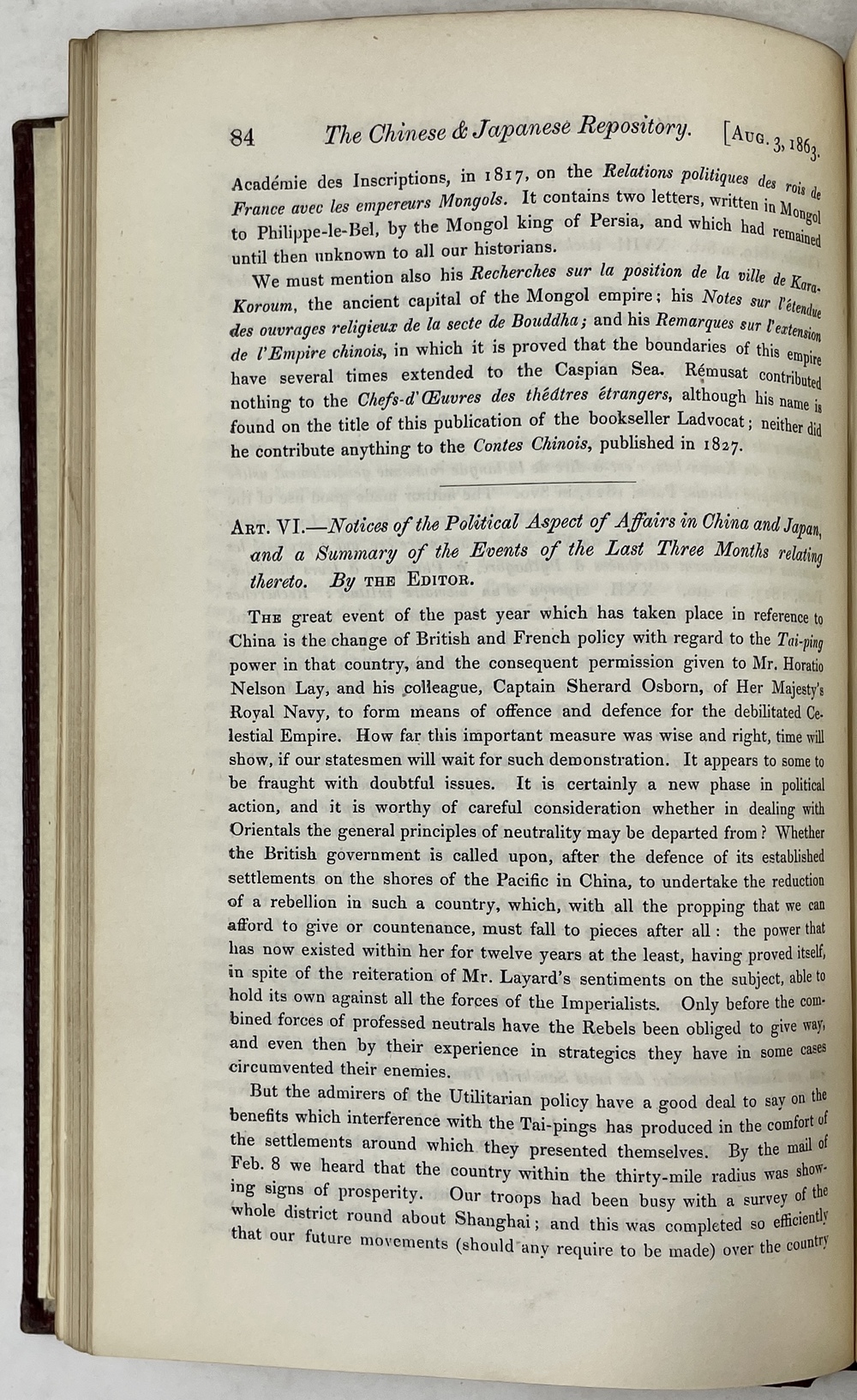 THE CHINESE AND JAPANESE REPOSITORY OF Facts and Events in Science, History, and Art, RELATING TO EASTERN ASIA. VOL. I [FROM JULY 1863 - JUNE 1864]