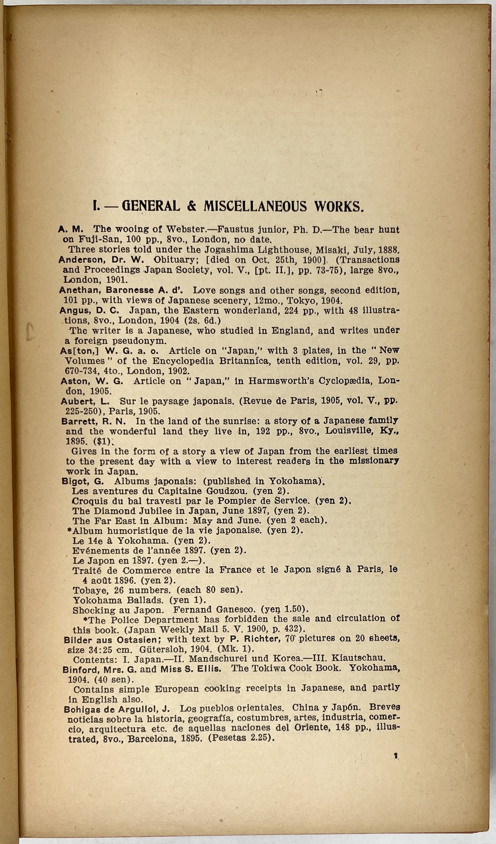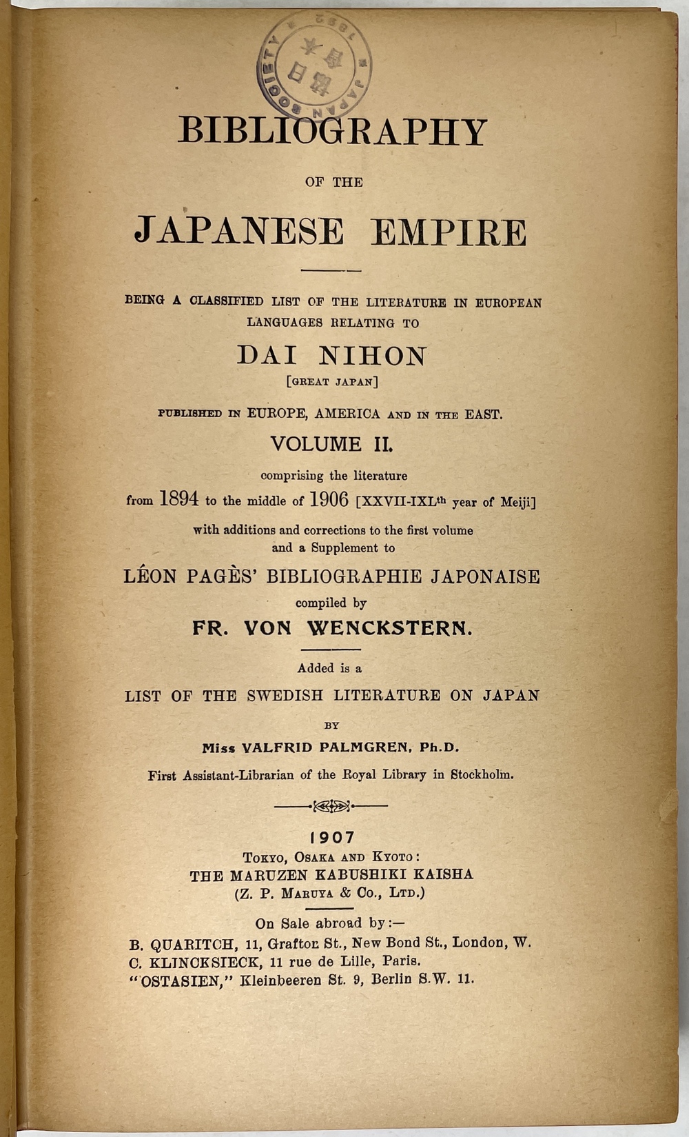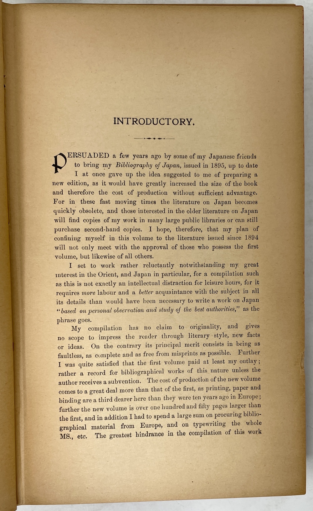 BIBLIOGRAPHY OF THE JAPANESE EMPIRE: BEING A CLASSIFIED LIST OF THE LITERATURE IN EUROPEAN LANGUAGES RELATING TO DAI NIHON[GREAT JAPAN] PUBLISHED IN EUROPE, AMERCIA AND IN THE EAST. VOLUME II. Comprising the literature from 1894 to the middle of 1907…
