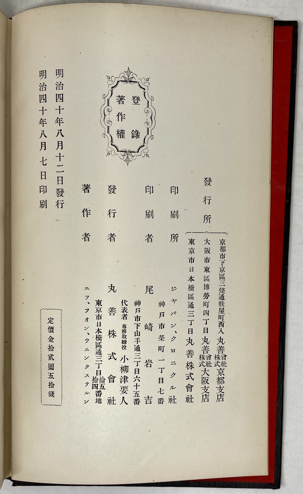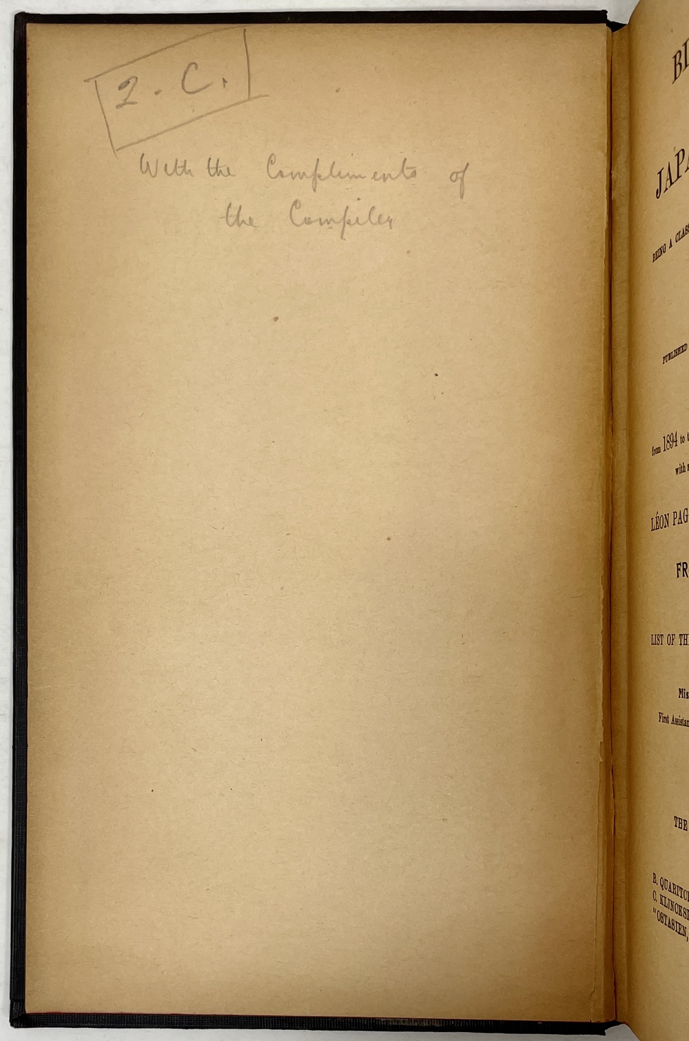 著者からロンドン日本協会への贈呈本 1907年 東京・大阪、京都(丸善)刊