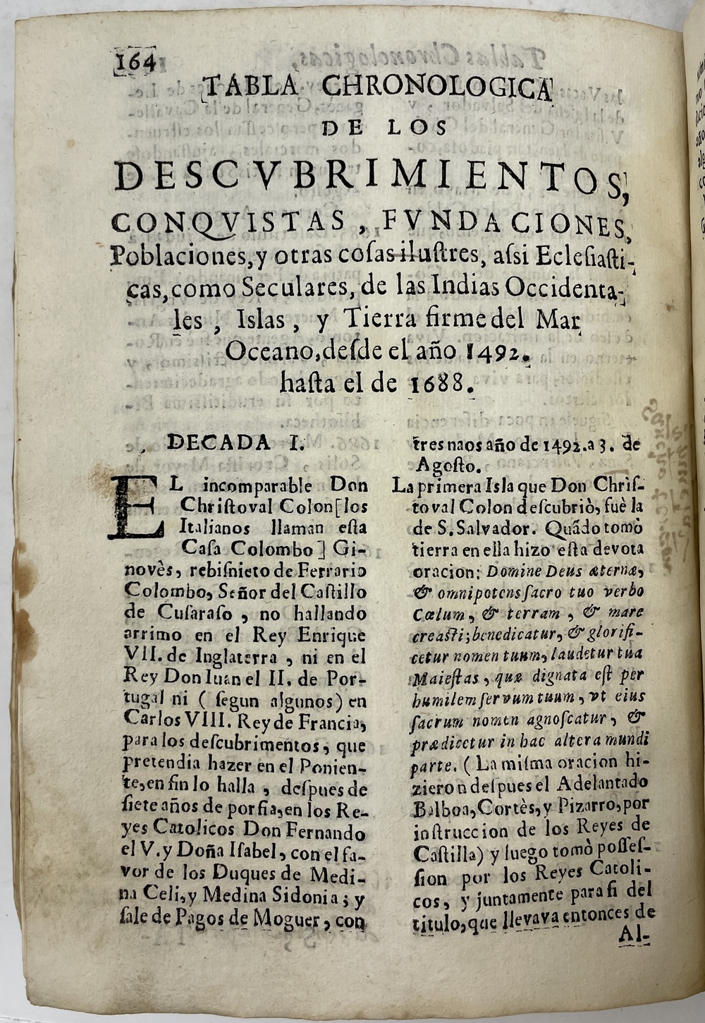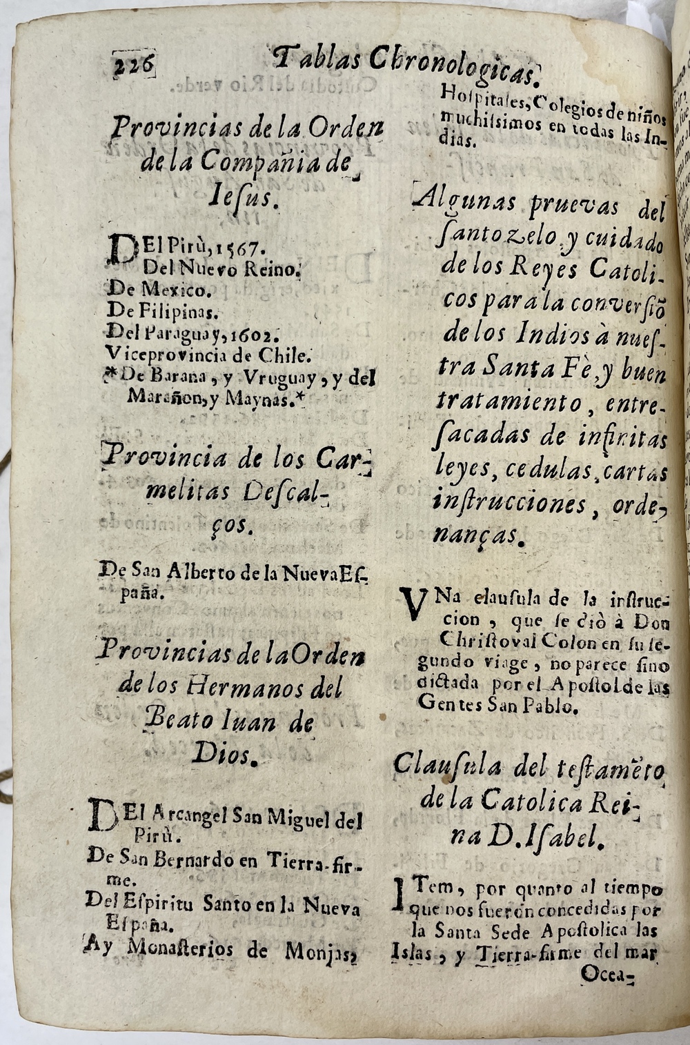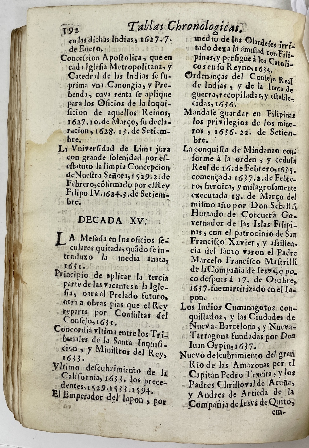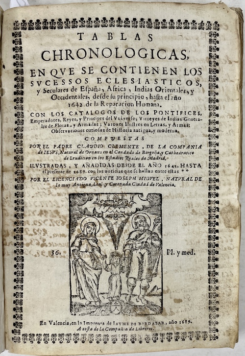 TABLAS CHRONOLOGICAS, EN QVE SE CONTIENEN LOS SVCESSOS ECLESIASTICOS, y Seculares de España, Africa, Indias, Orientales, y Occidentales, desde su principio, hasta el año 1642….ILVSTRADAS, Y AÑADIDAS DESDE EL AÑO 1642. HASTA el presente de 1689.....