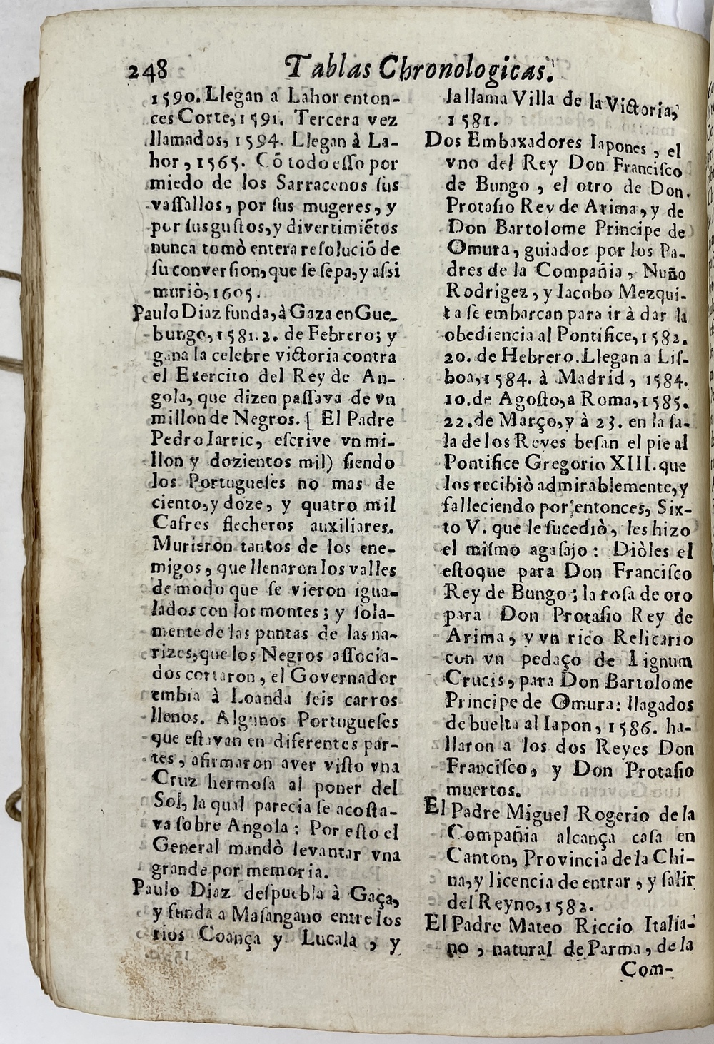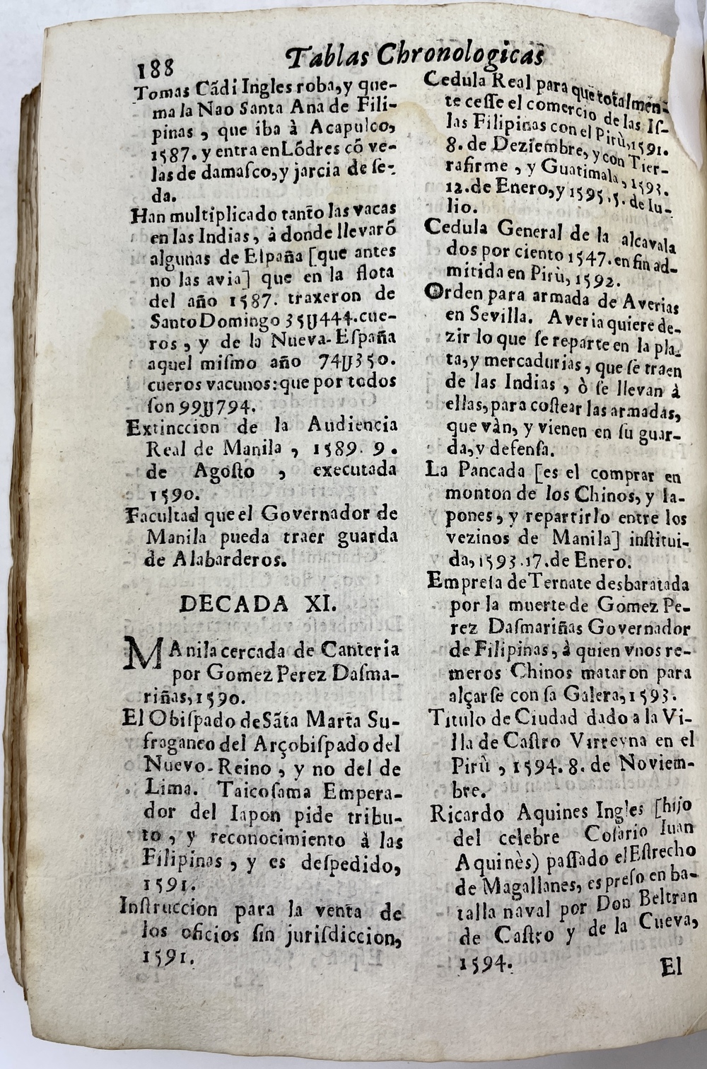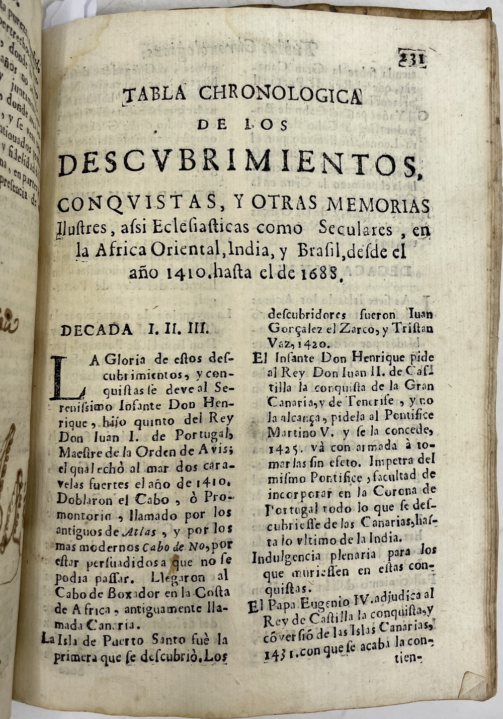 TABLAS CHRONOLOGICAS, EN QVE SE CONTIENEN LOS SVCESSOS ECLESIASTICOS, y Seculares de España, Africa, Indias, Orientales, y Occidentales, desde su principio, hasta el año 1642….ILVSTRADAS, Y AÑADIDAS DESDE EL AÑO 1642. HASTA el presente de 1689.....