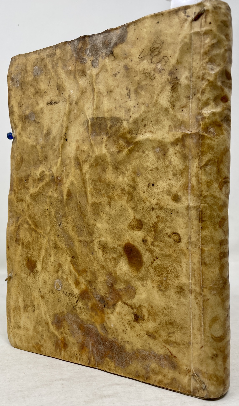刊行当時のものと思われる装丁で、皮革に縮みが見られるが概ね良好な製本状態。刊行当時に近いものと思われる書き込みが本文や末尾の白紙箇所に多数見られるが、テキスト本文の判読に支障はない状態。