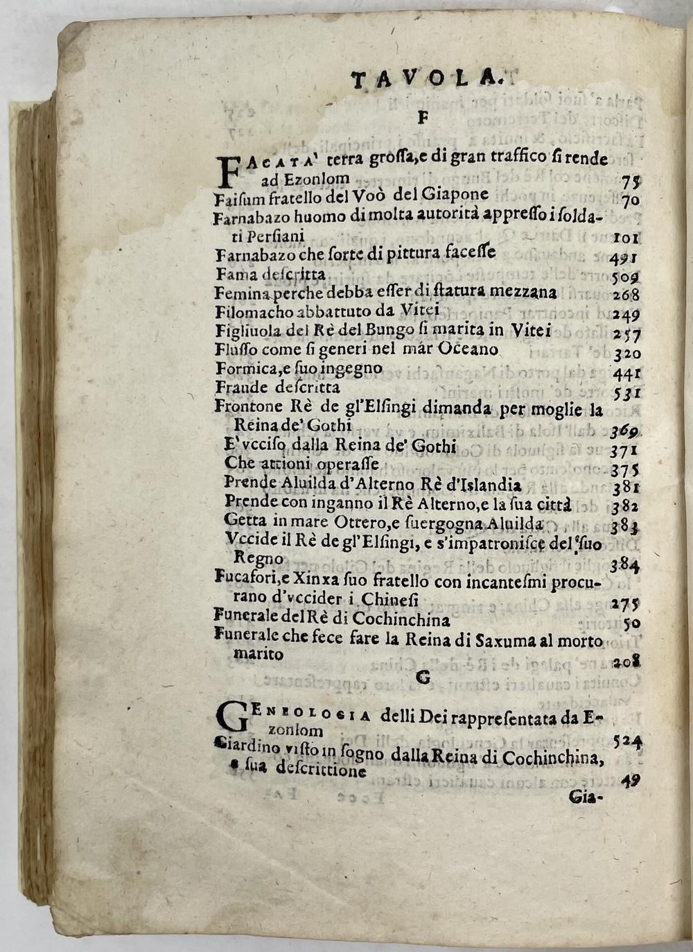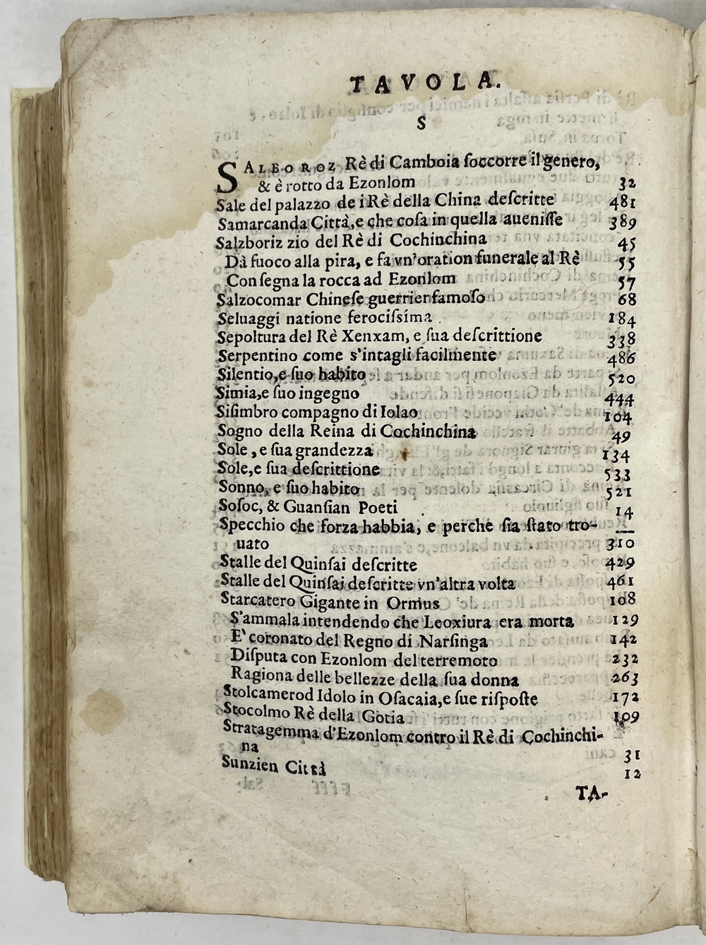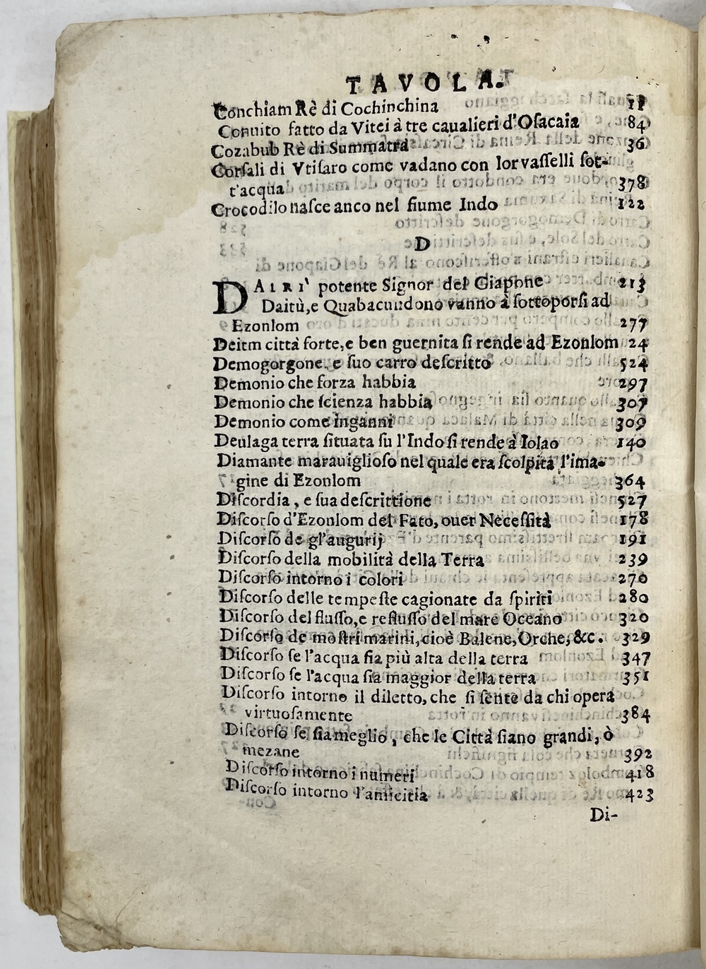 i.e. LACKING ?], 398-498, 599(i.e.499), 500-574, 525(i.e.575), 526(i.e.576), 10 leaves(Tavola), 1 leaf(blank). Modern vellum, skillfully restored.