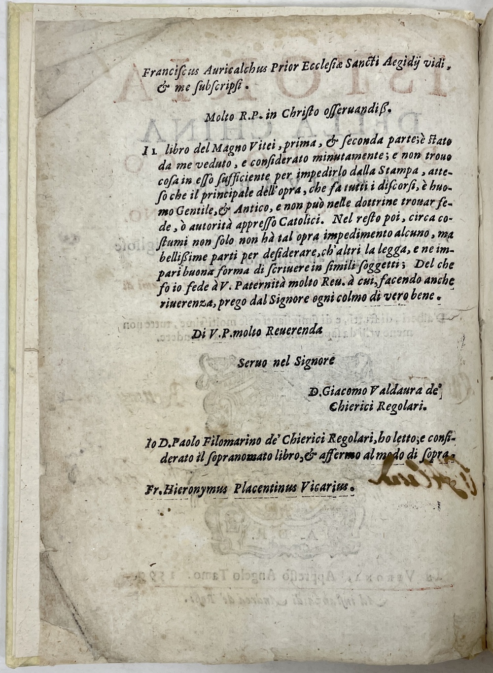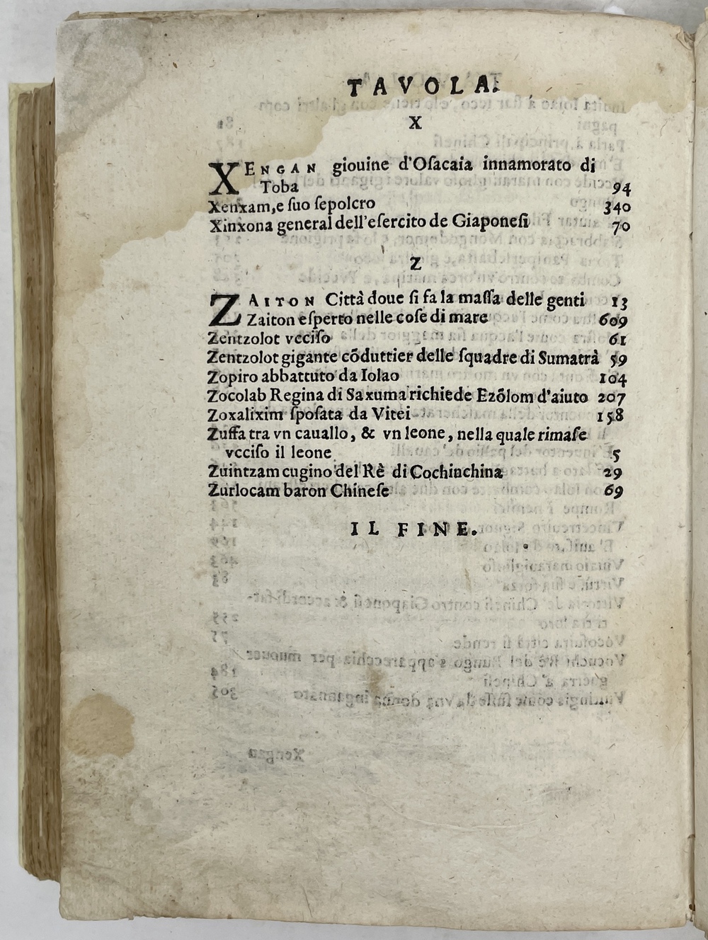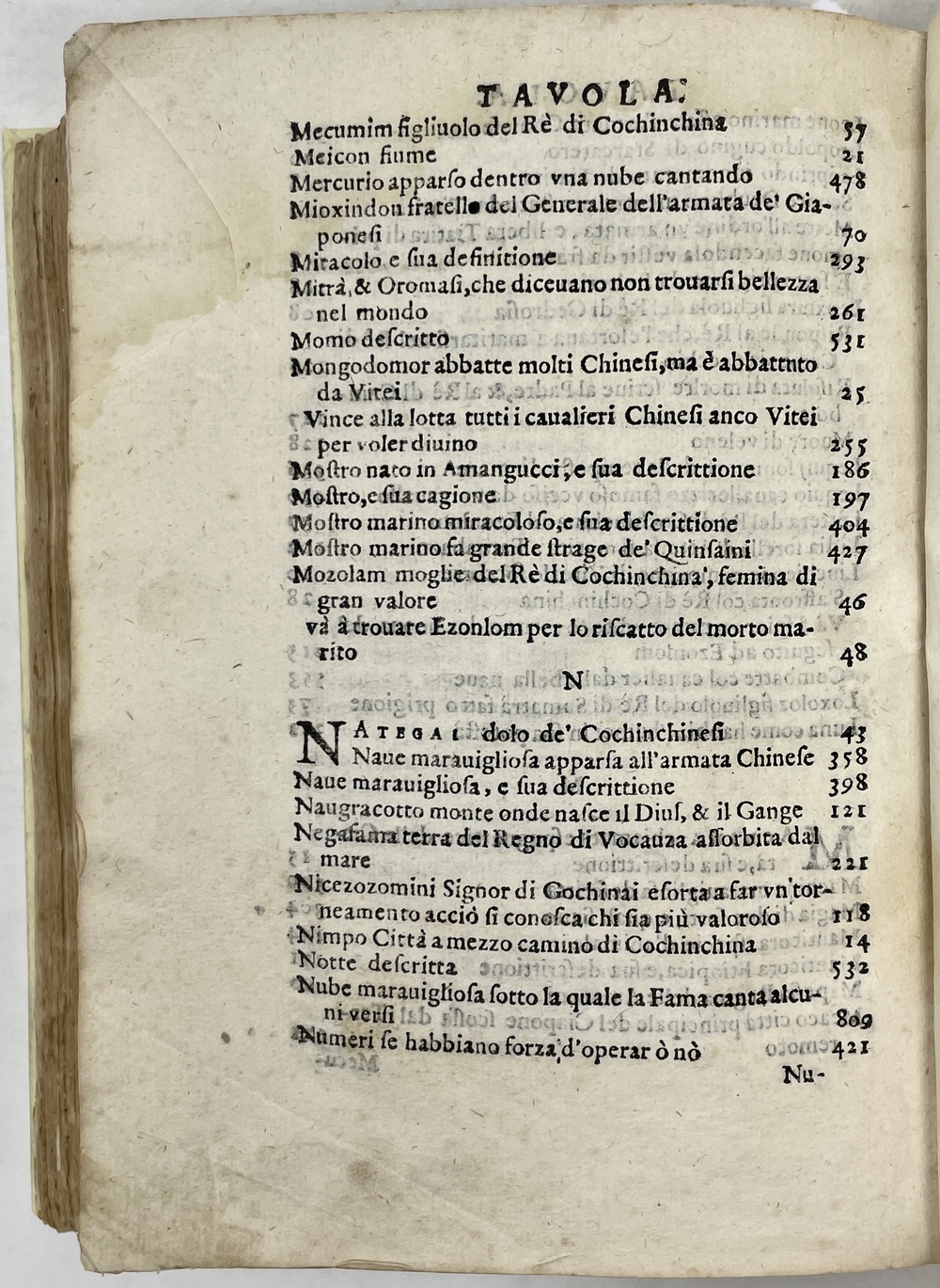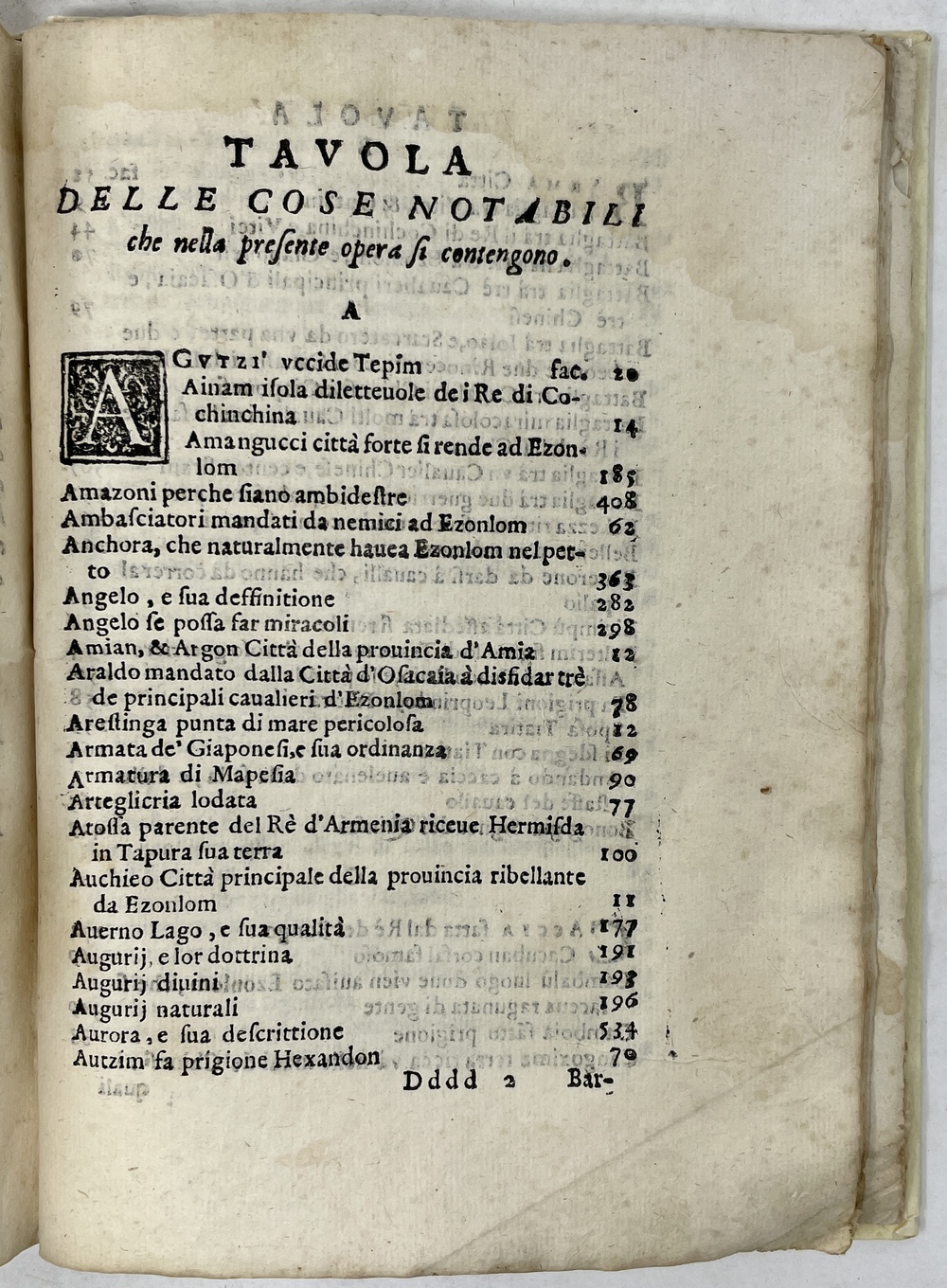 i.e. LACKING ?], 398-498, 599(i.e.499), 500-574, 525(i.e.575), 526(i.e.576), 10 leaves(Tavola), 1 leaf(blank). Modern vellum, skillfully restored.