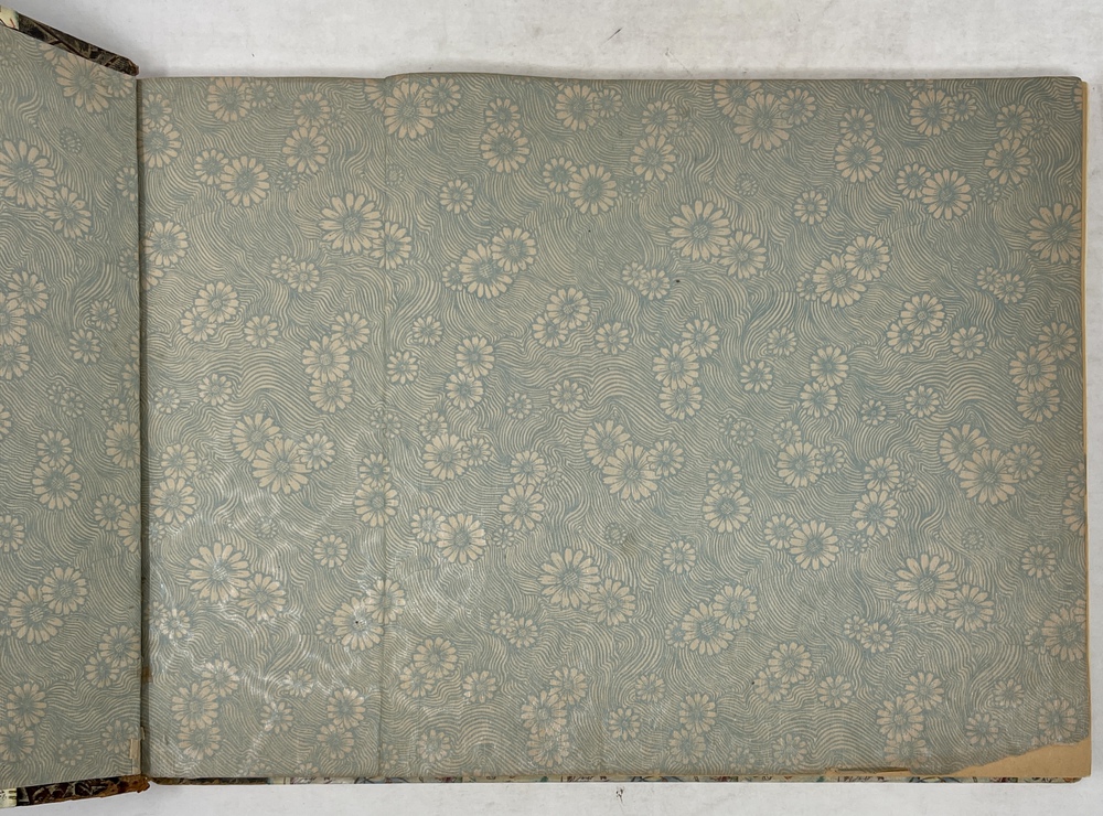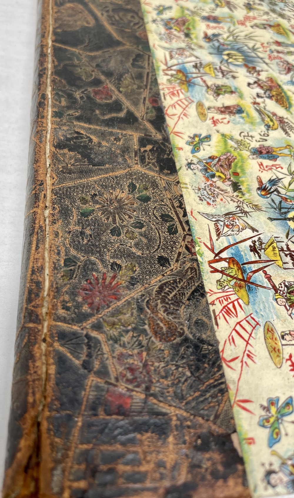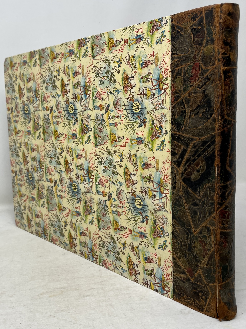 Decorative half leather on pictorial card boards.