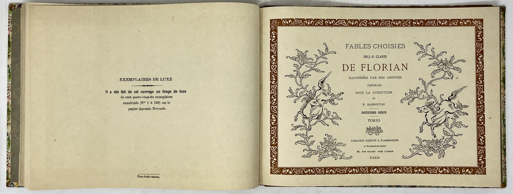 FABLES CHOISIES DE FLORIAN. DEJ.-P. CLARIS DE FLORIAN: ILLUSTRÉES PAR DES ARTISTES JAPONAIS SOUS LA DIRECTION DE P. BARBOUTAU.