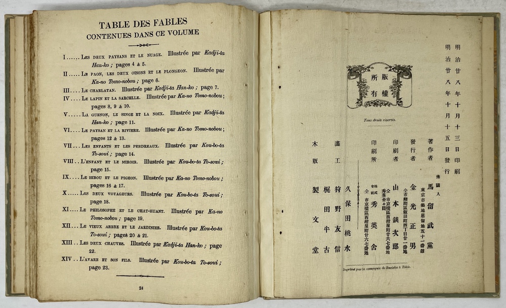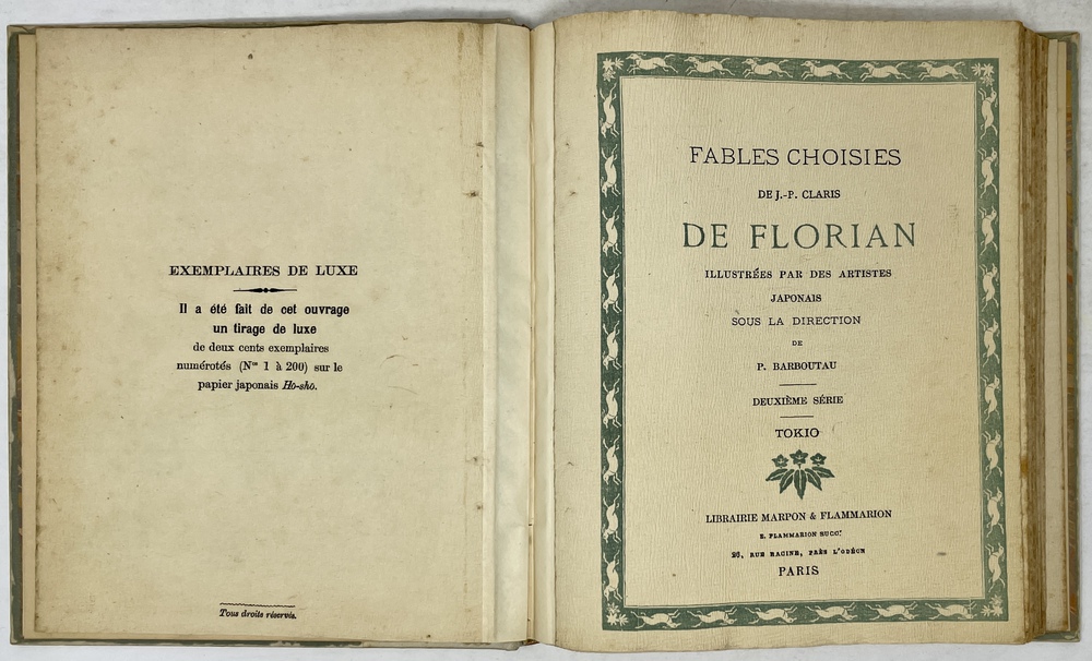 FABLES CHOISIES DE FLORIAN. DEJ.-P. CLARIS DE FLORIAN: ILLUSTRÉES PAR DES ARTISTES JAPONAIS SOUS LA DIRECTION DE P. BARBOUTAU.