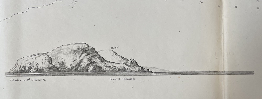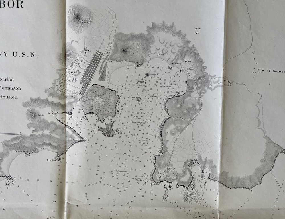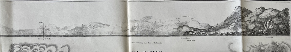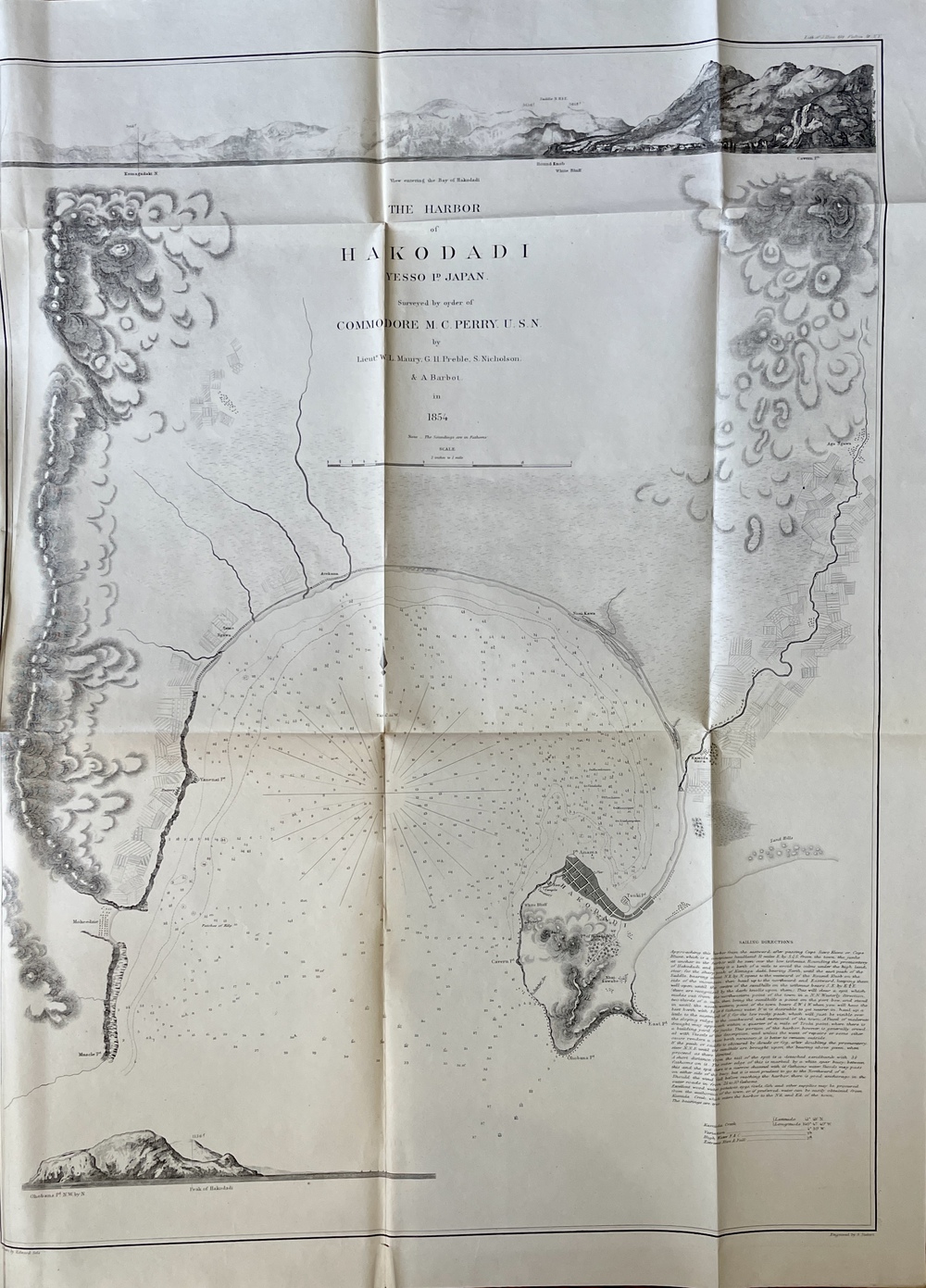 THE HARBOR of HAKODADI YESSO ID. JAPAN. Surveyd by order of COMMODORE M.C. PERRY. U.S.N. by Lieuts. W.L. Maury, G.H. Preble, S. Nicholson & A Barbot. In 1854.