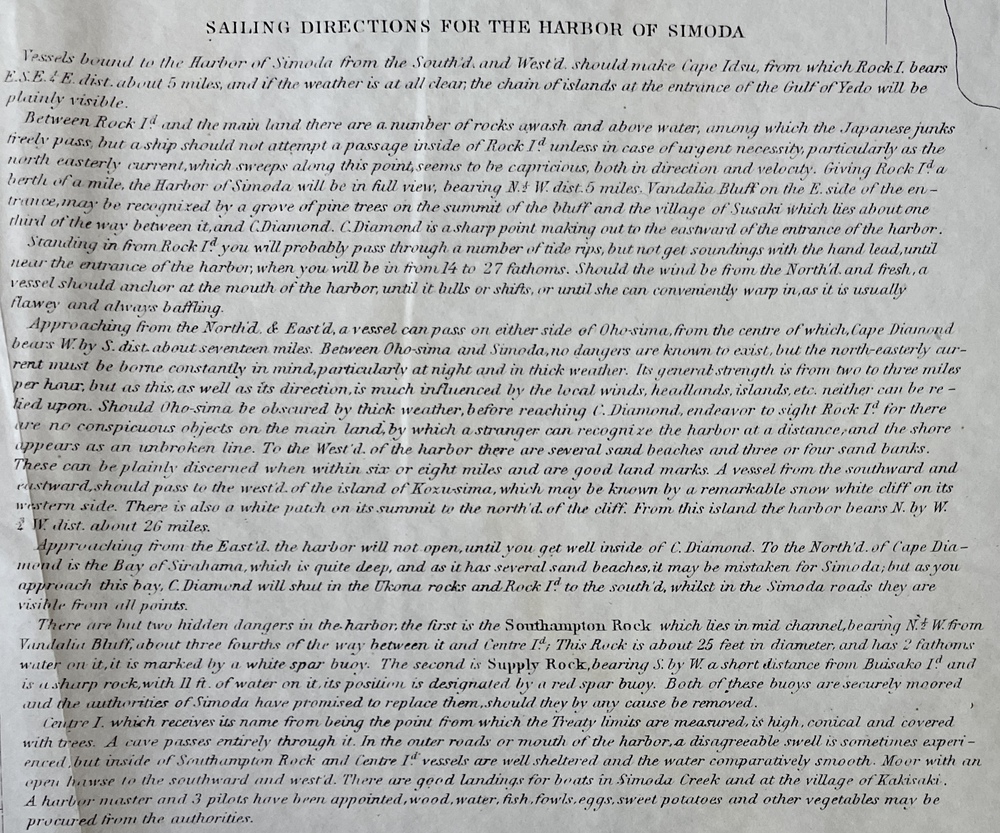 SIMODA HARBOR I. OF NIPPON Surveyed by order of COMMODORE M.C.PERRY U.S.N. by Lieut. W.L.Maury[,] Act. Lieut. A.Barbot[,] S. Bent[,] Leiut. Act.Mr.G.V.Dennison[,] Lieut. S.Nicholdon[,] Pd. Mdn.T.T.Houston in 1854.