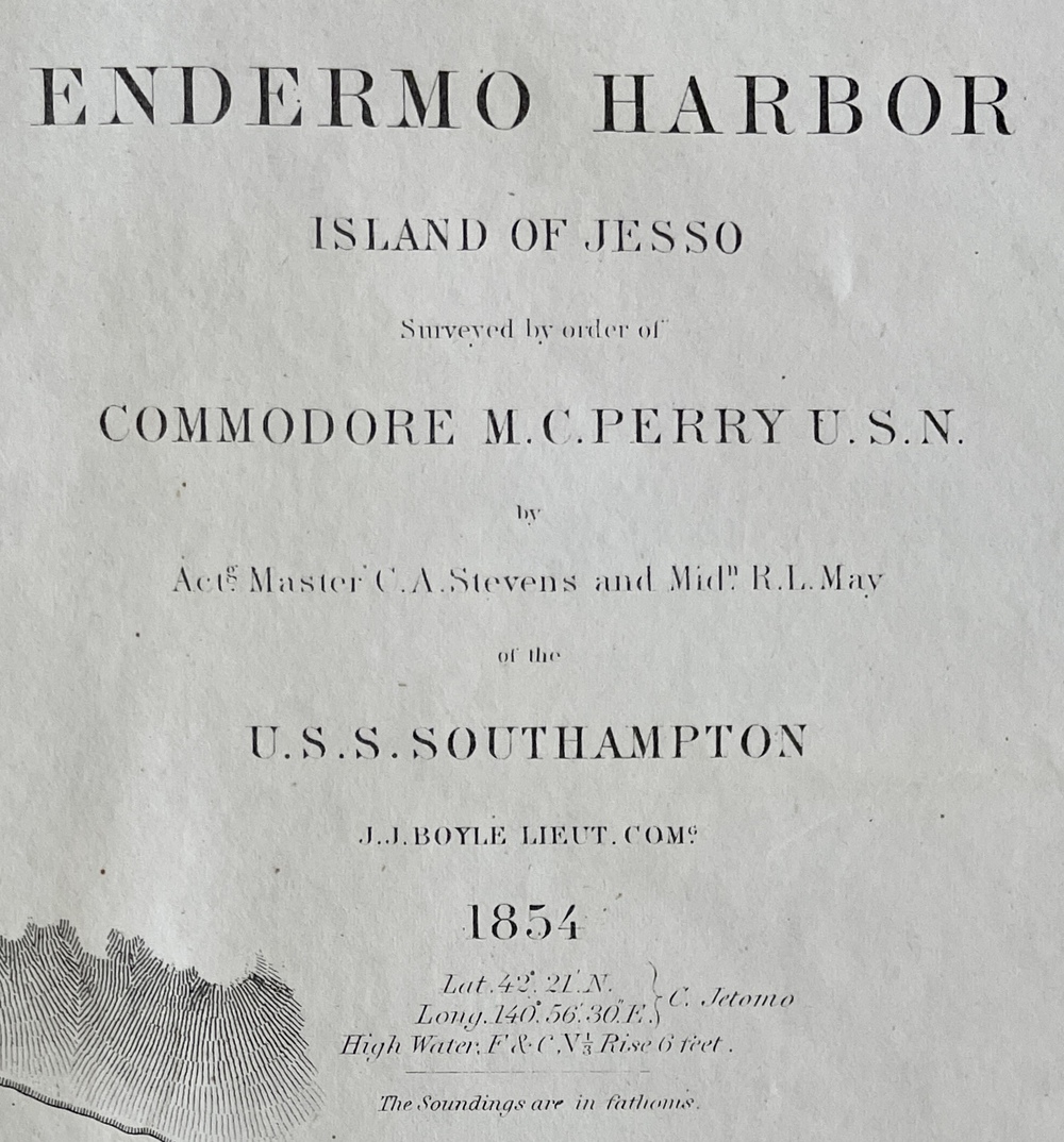 ENDERMO HARBOR ISLAND OF JESSO Surveyed by order of COMMODORE M.C.PERRY U.S.N. by Actg. Master C.A.Stevens and Midn.R.L.May of the U.S.S.SOUTHAMPTON J.J.BOYLE LIEUT.COMG. 1854.