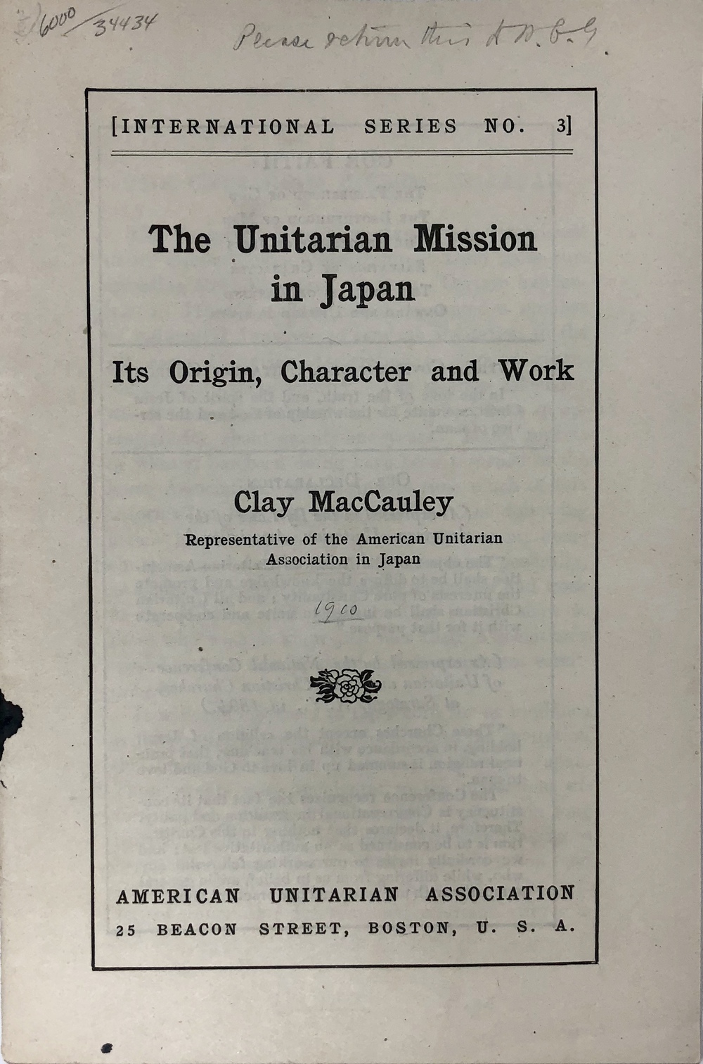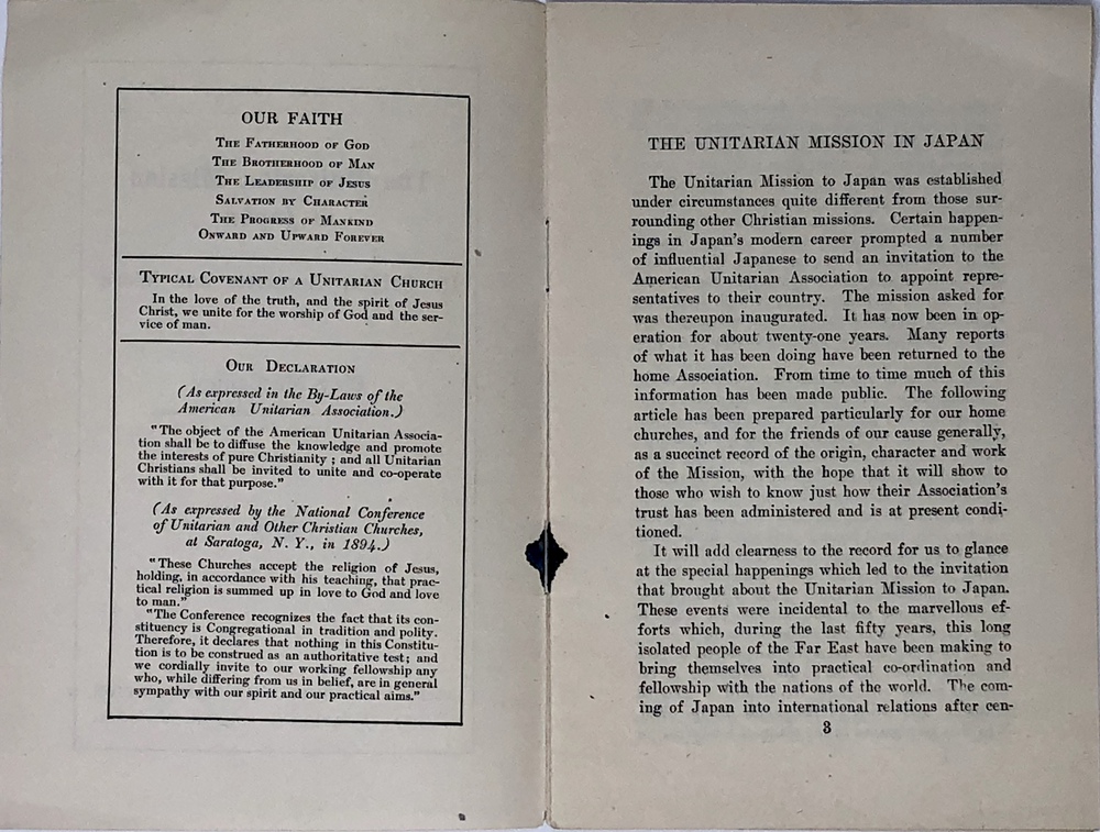 The Unitarian Mission in Japan: Its Origin, character and Work. (INTERNATIONAL SERIES NO. 3)