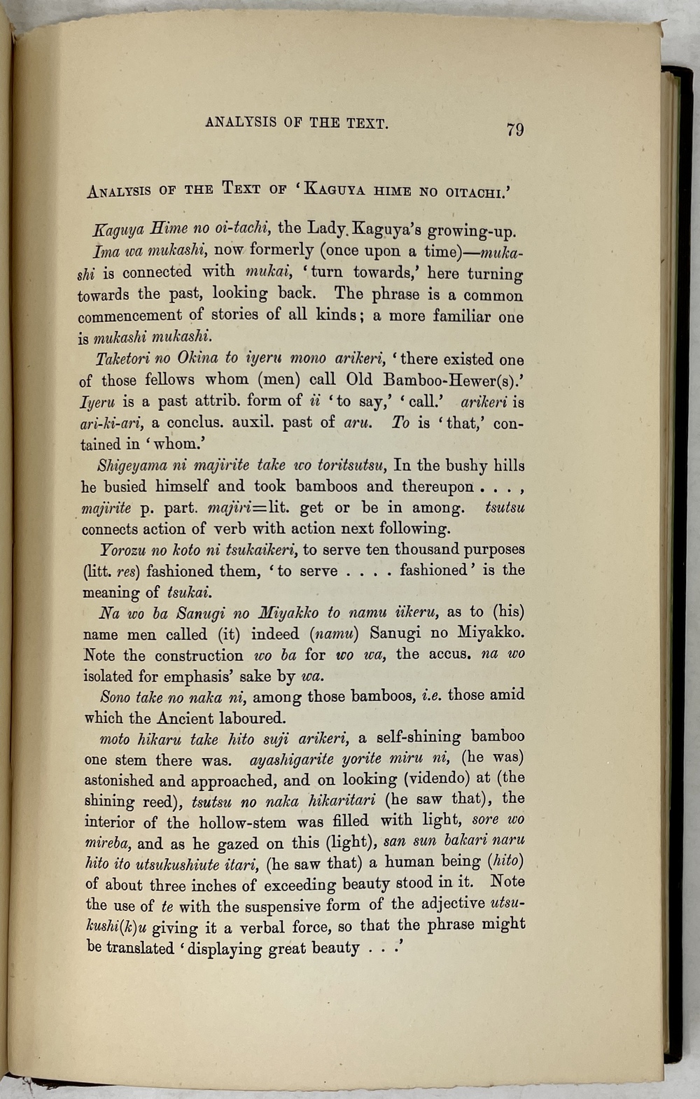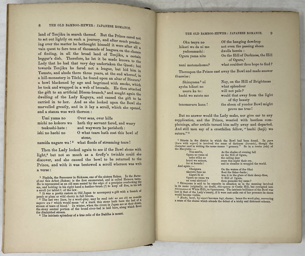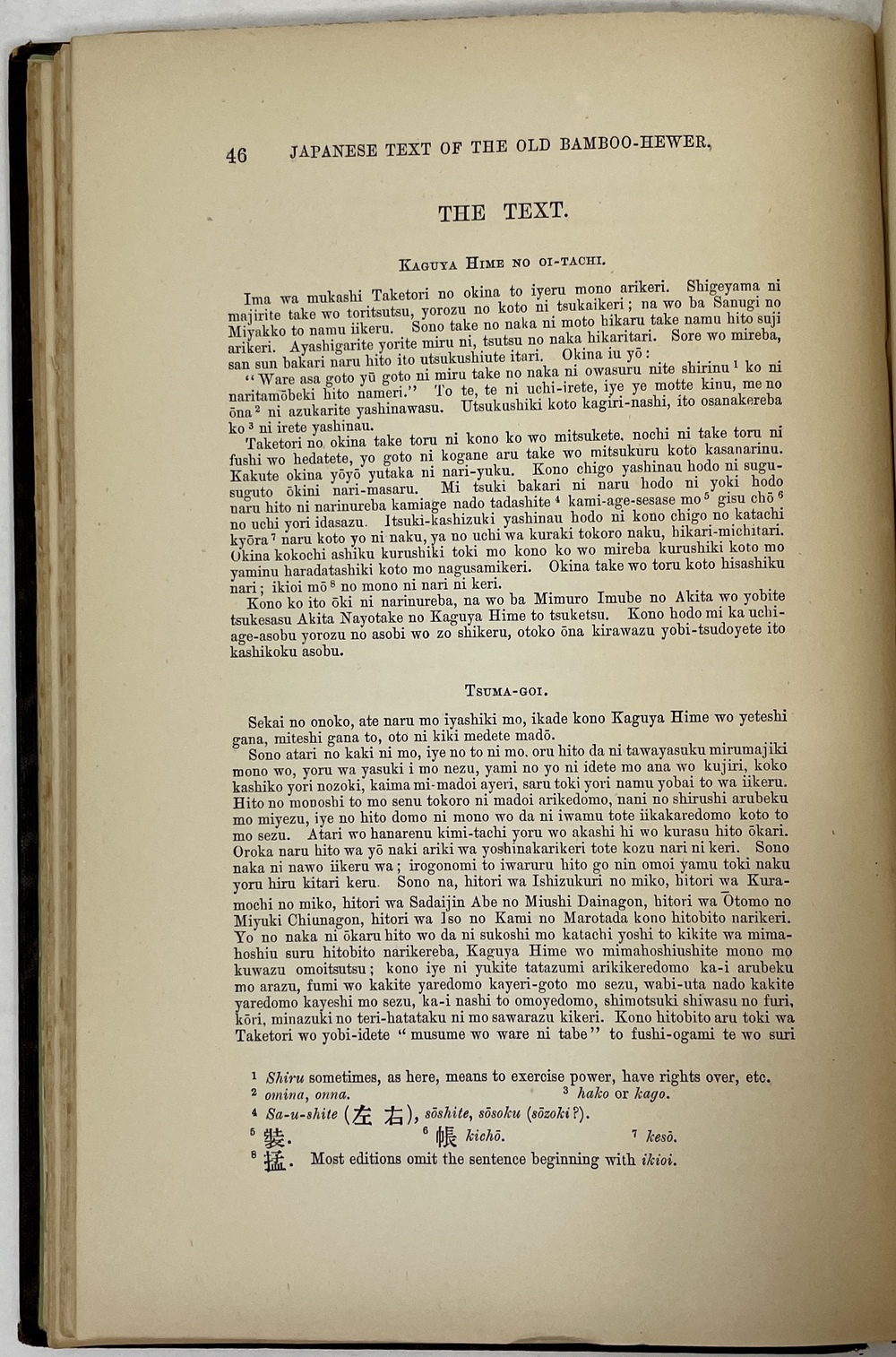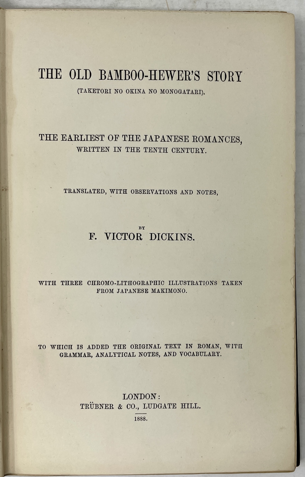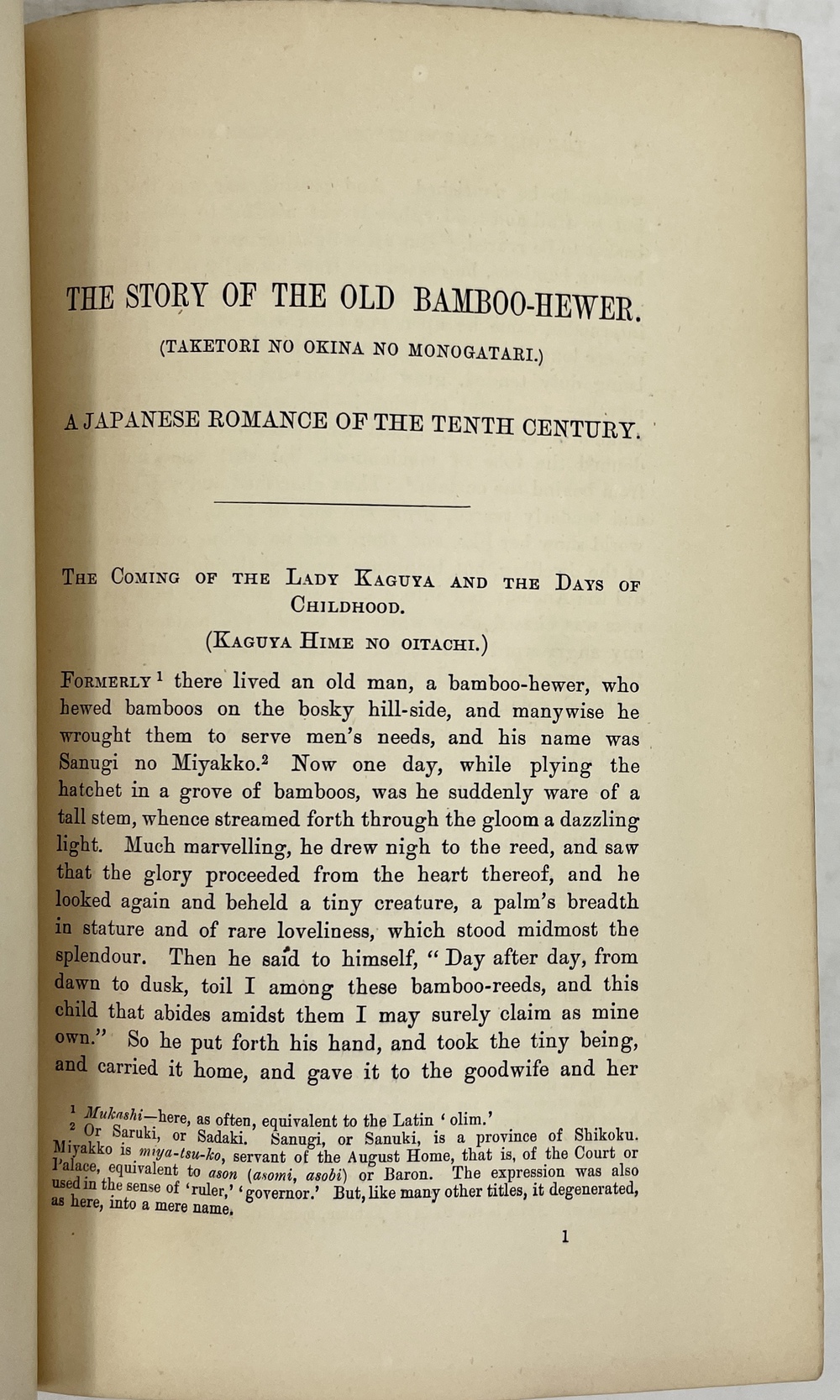 THE OLD BAMBOO-HEWER’S STORY (TAKETORI NO OKINA NO MONOGATARI). THE EARLIEST OF THE JAPANESE ROMANCES, WRITTEN IN TENTH CENTURY. TRANSLATED, WITH OBSERVATIONS AND NOTES,…