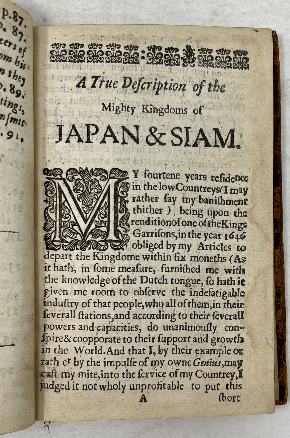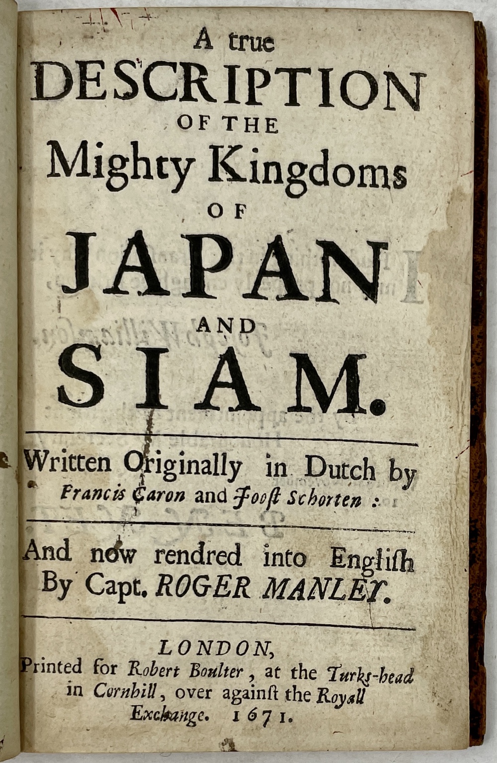 A true DESCRIPTION OF THE Mighty Kingdoms of JAPAN AND SIAM. Written Originally in Dutch by Francis Caron and Foost Schorten: And now rendred into English By Capt. ROGER MANLEY.