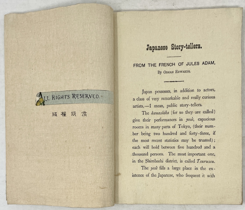JAPANESE STORY-TELLERS. FROM THE FRENCH OF JULES ADAM BY OSMAN EDWARDS.