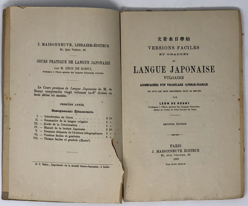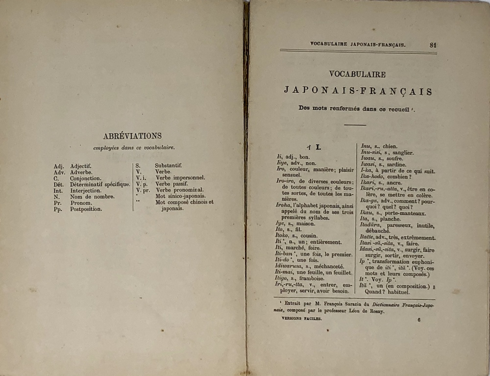 始学日本安文 VERSIONS FACILES ET GRADUÉS EN LANGUE JAPONAISE VULGAIRE ACCOMPAGNÉES D'UN VOCABULAIRE JAPONAIS-FRANÇAIS DE TOUS LES MOTS RENFERMÉS DANS LE RECUEIL.