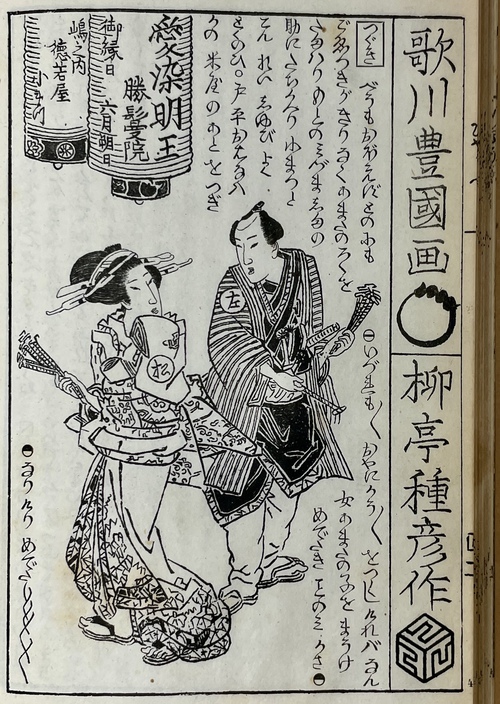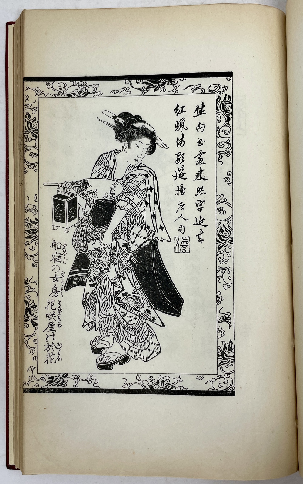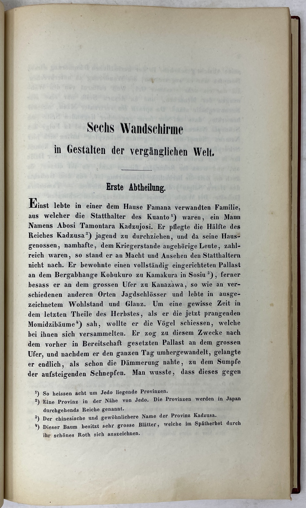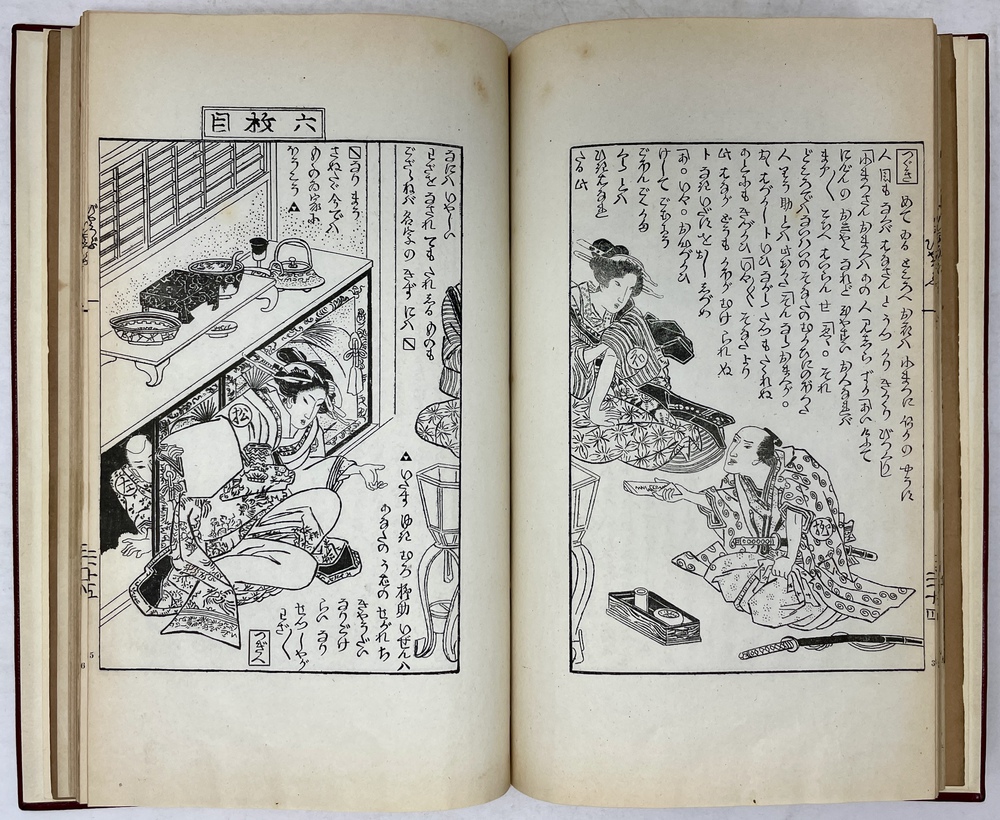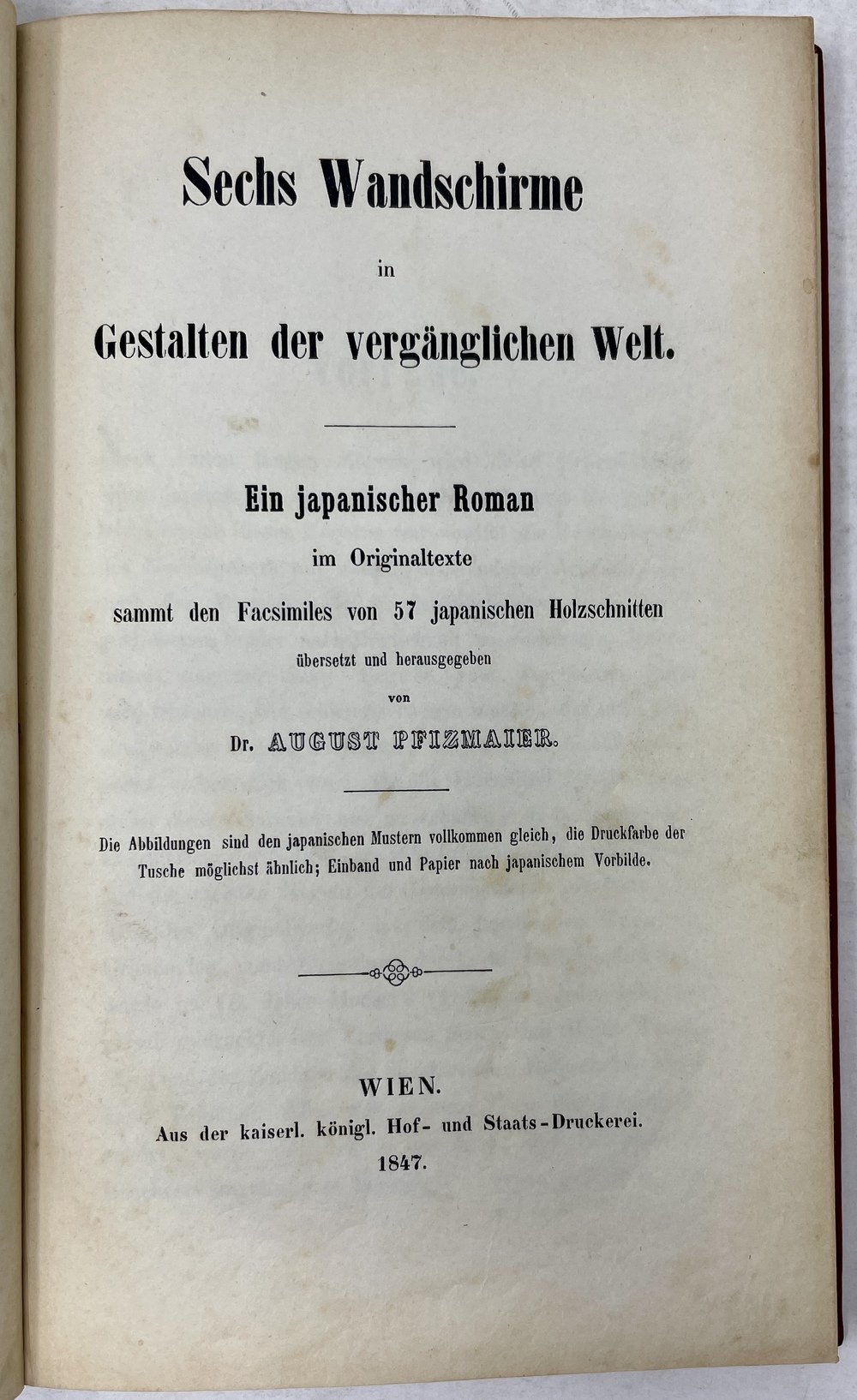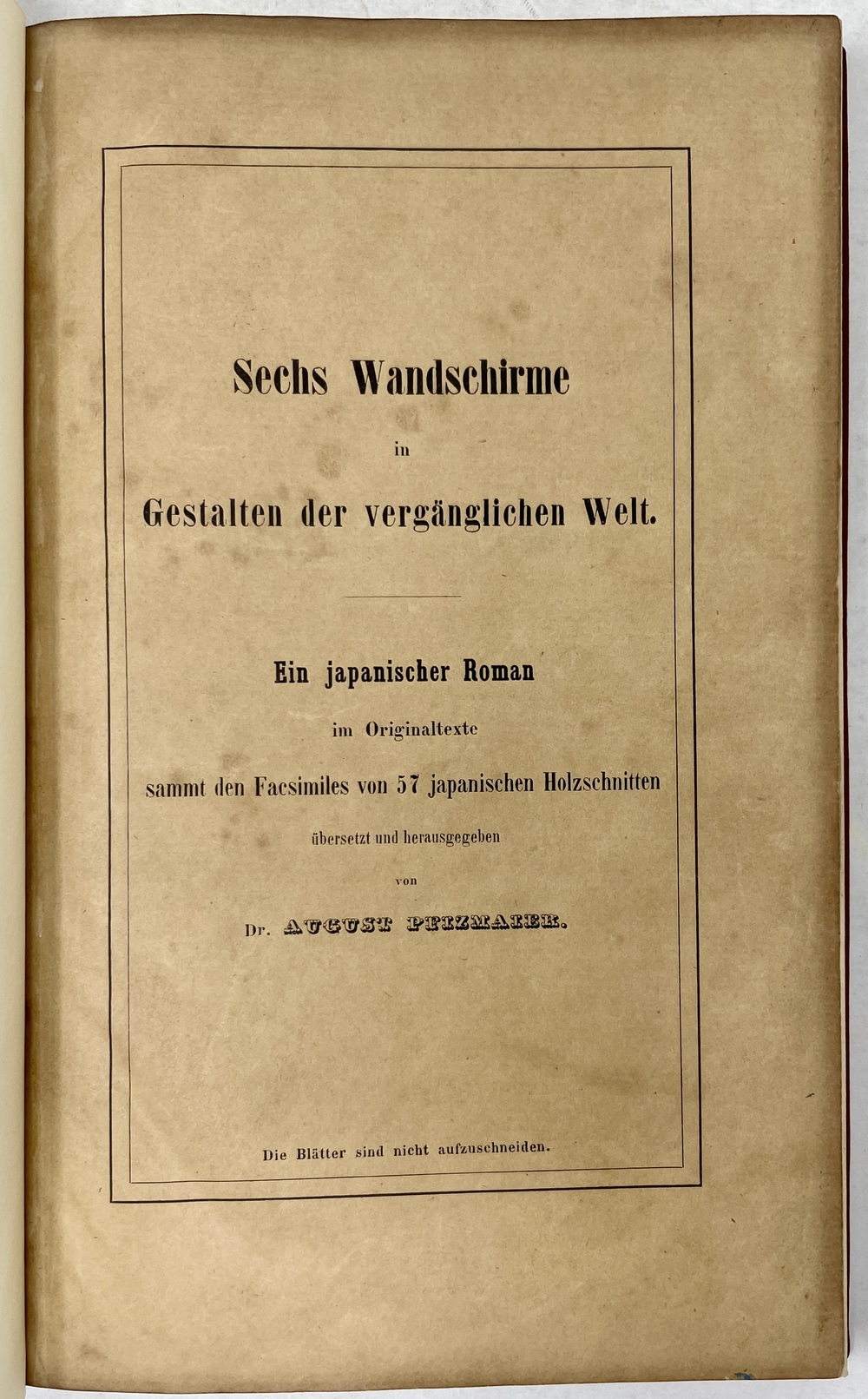 Sechs Wandschirme in Gestalten der vergänglichen Welt. Ein japanischer Roman in Originaltexte stammt den Facsimiles von 57 japanischen Holzschnitten.