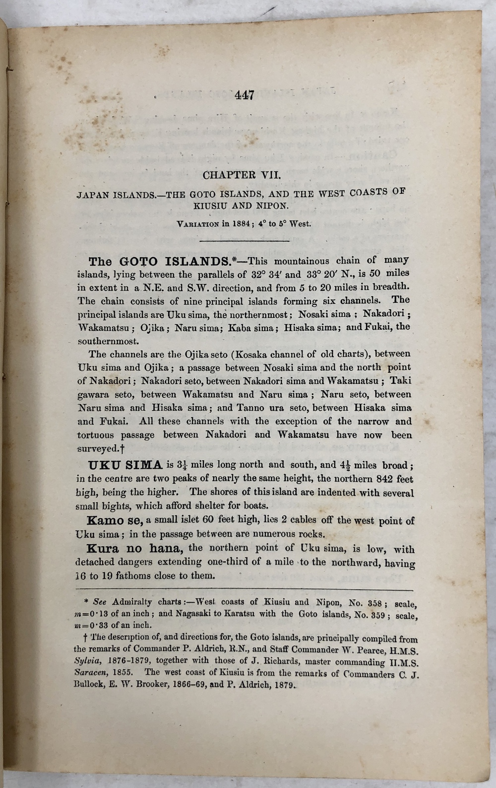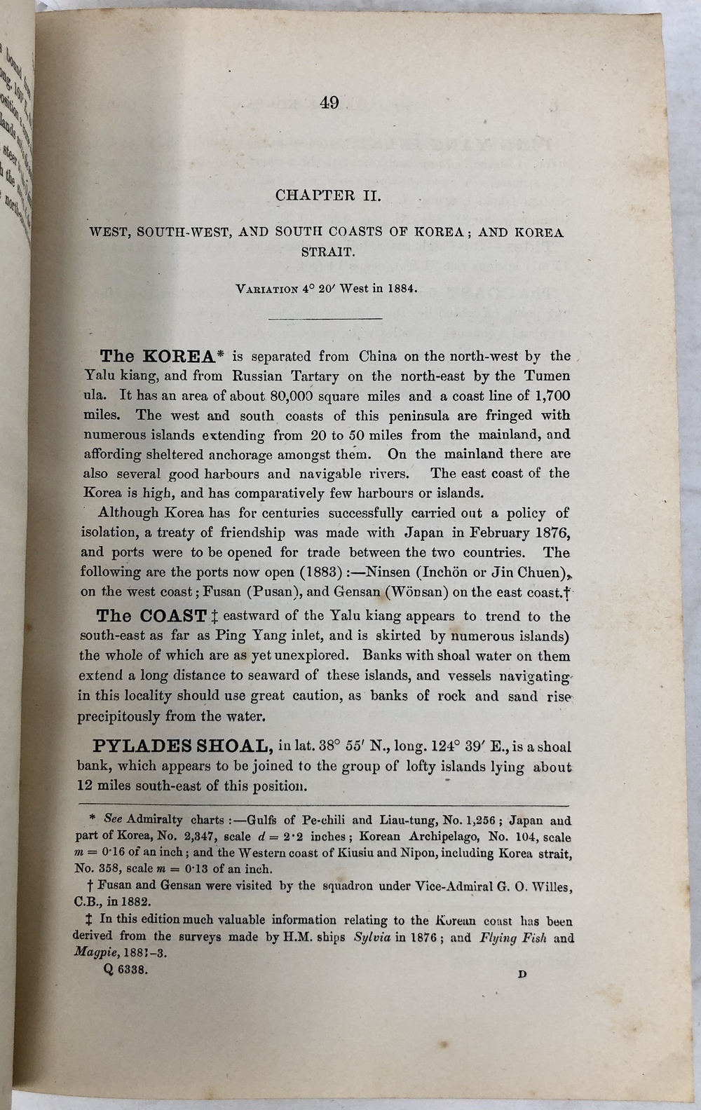 『中国近海水路誌 第4巻:朝鮮沿岸、韃靼ロシア、日本諸島、韃靼海湾とアムール、オホーツク海ならびに宮古、琉球、リンスホーテン(吐噶喇)、ボーニン(小笠原)、サハリン、千島列島』