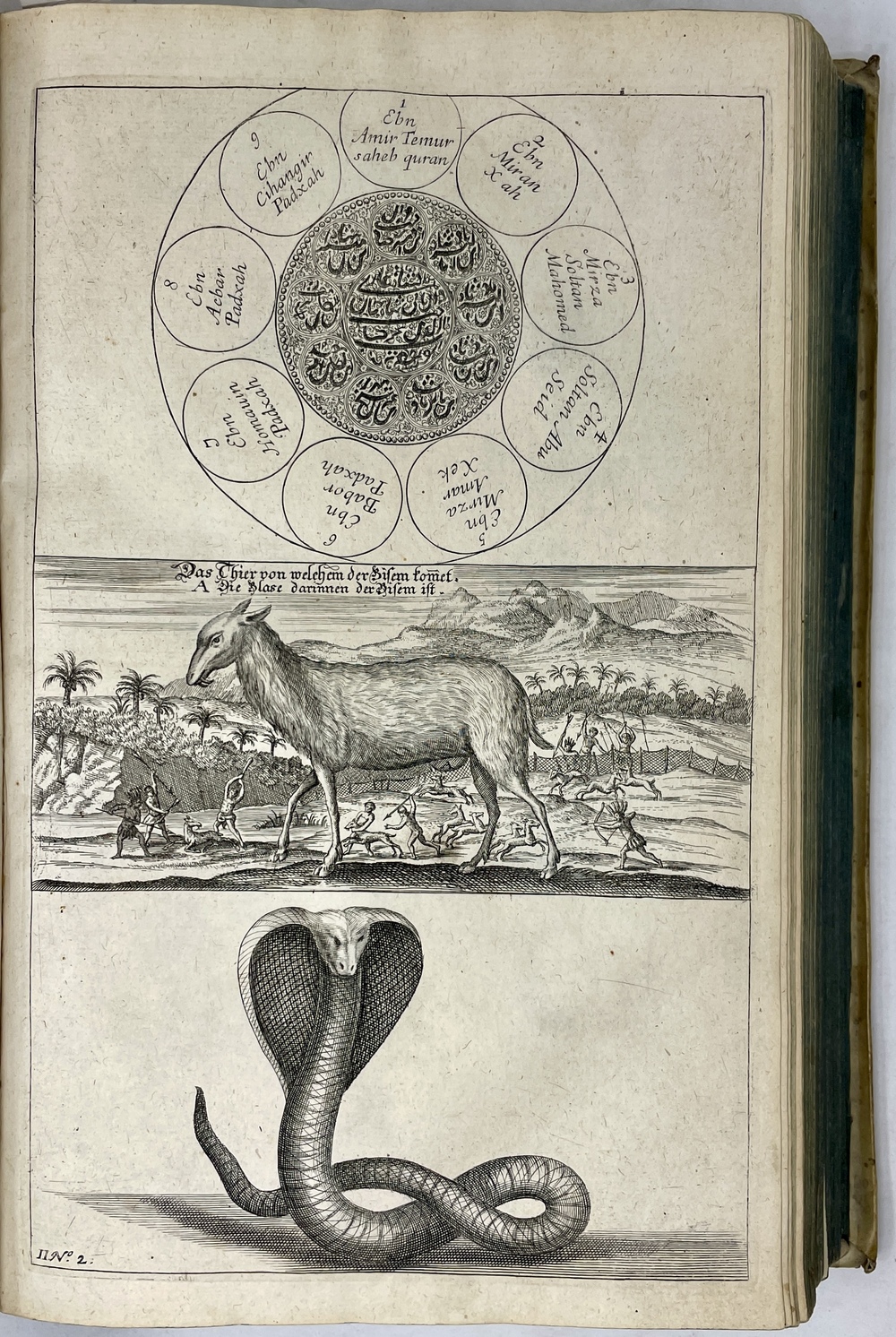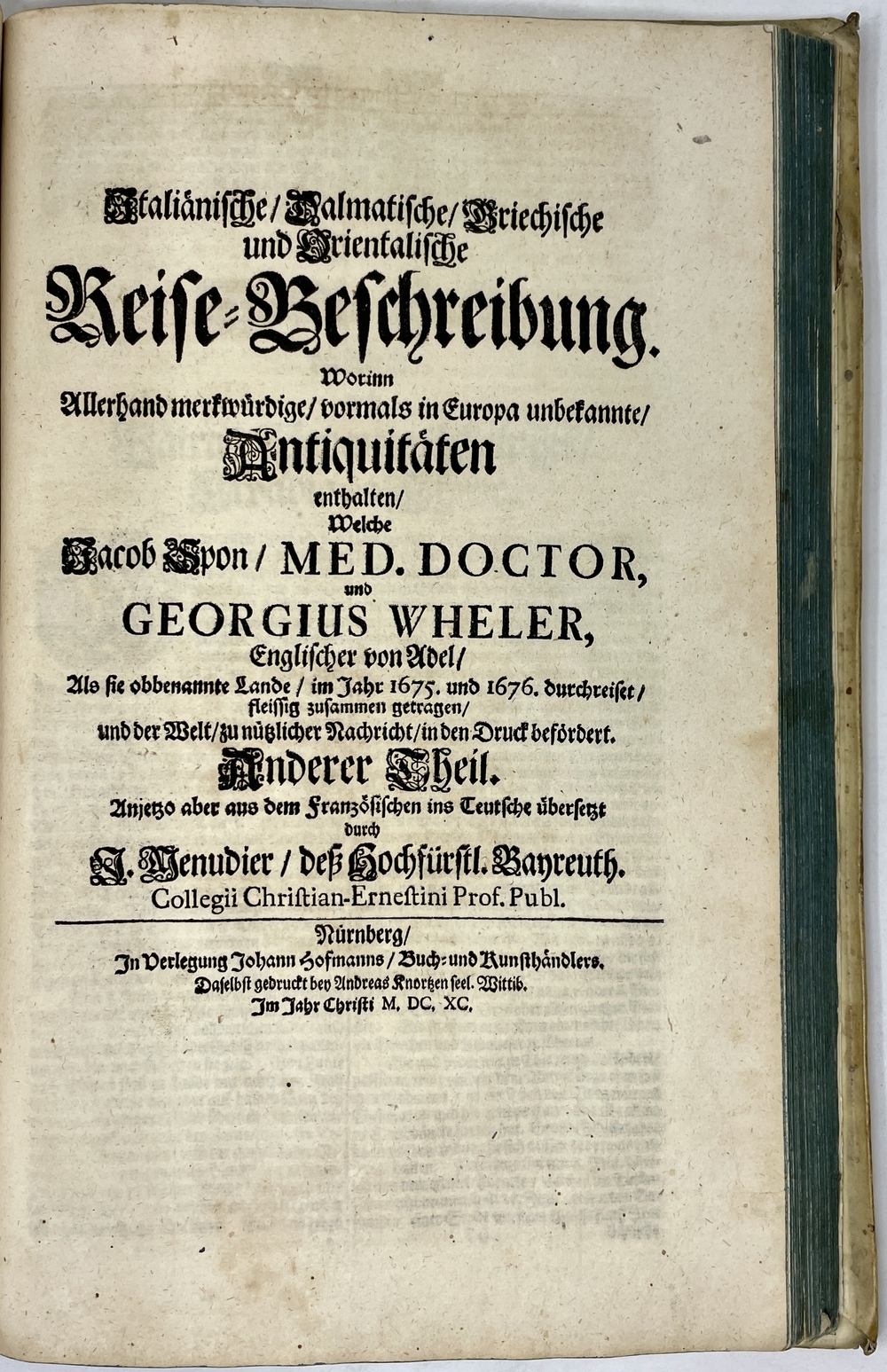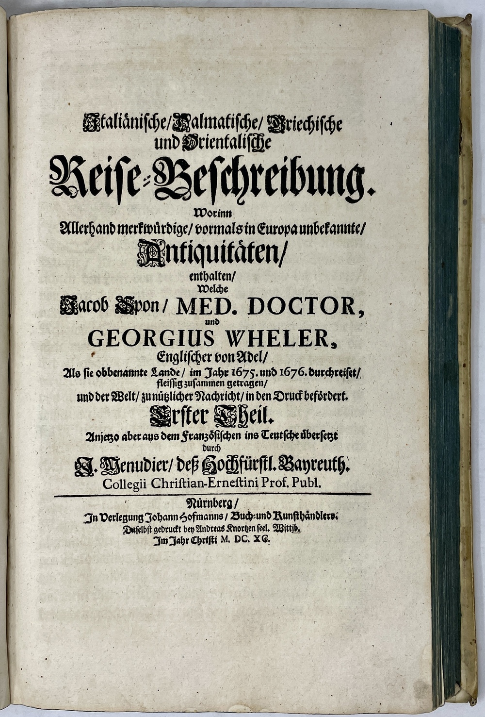 [Bound with] Front., Title., 3 leaves, pp.1-98, 96(i.e.99), 100-115, 16(i.e.116), 117, 181(i.e.118), 119-122, Plates: [4], Title., pp.1-39, 38(i.e.40), 41-120, 2 leaves, (some folded)Plates: [3]. Contemporary vellum.刊行当時のものと思われる装丁で装丁や用紙の一部に傷み