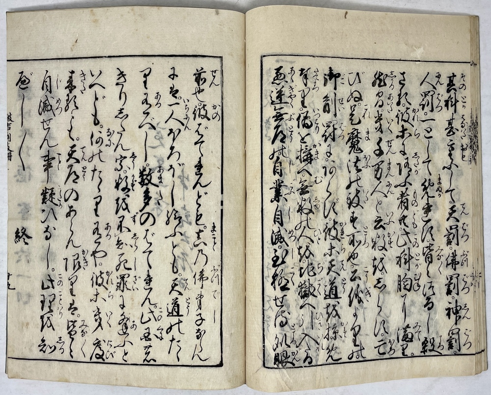 『破切支丹』は、代官鈴木重成の実兄で曹洞宗僧である正山が著した排耶書。島原・天草一揆の後、鈴木代官による天草復興政策の一つとして、キリシタン根絶のため仏教の再教化が行われた。重成は正三に助力を求め、幕府に対して郡内に社寺領三万石の下付を主眼し仏寺32寺を創建・復興し、『破切支丹』を著して各寺に配布したといわれている。正三の天草来島は、『石平道人行業記』によると寛永19年(1642)から正保2年(1645)までと慶安元年(1648)から翌年までの2回とされており、『破切支丹』は第1回目来当時の頃に成立したといわれている。しかし、天草の寺院から『破切支丹』は未発見であり、現存するものは正三没後、京都で寛文2年(1662)出版されたものの求版で、山本平左衛門の刊本である。」(『天草市立キリシタン館 常設展時図録』2022年、資料61・62解説より)