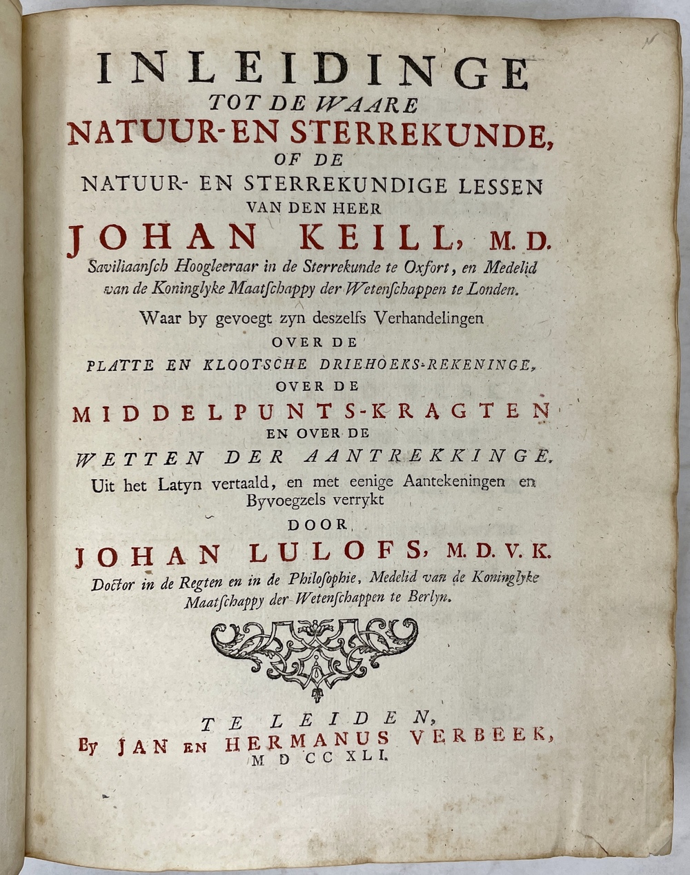 INLEIDINGE TOT DE WAARE NATUUR-EN STERREKUNDE, OF DE NATUUR-EN STERREKUNDIGE LESSEN…OVER DE PLATTE EN KLOOTSCHE DRIEHOEKS-REKENINGE, OVER DE MIDDELPUNTS-KRAGTEN EN OVER DE WETTEN DER AANTREKKINGE…
