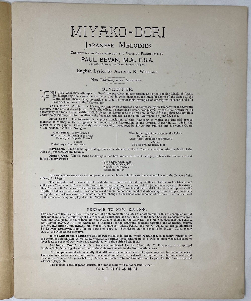 MIYAKO-DORI: JAPANES EMELODIES: COLLECTED AND ARRANGED FOR THE VOICE OR PIANOFORTE...NEW EDITION, WITH ADDITIONS.