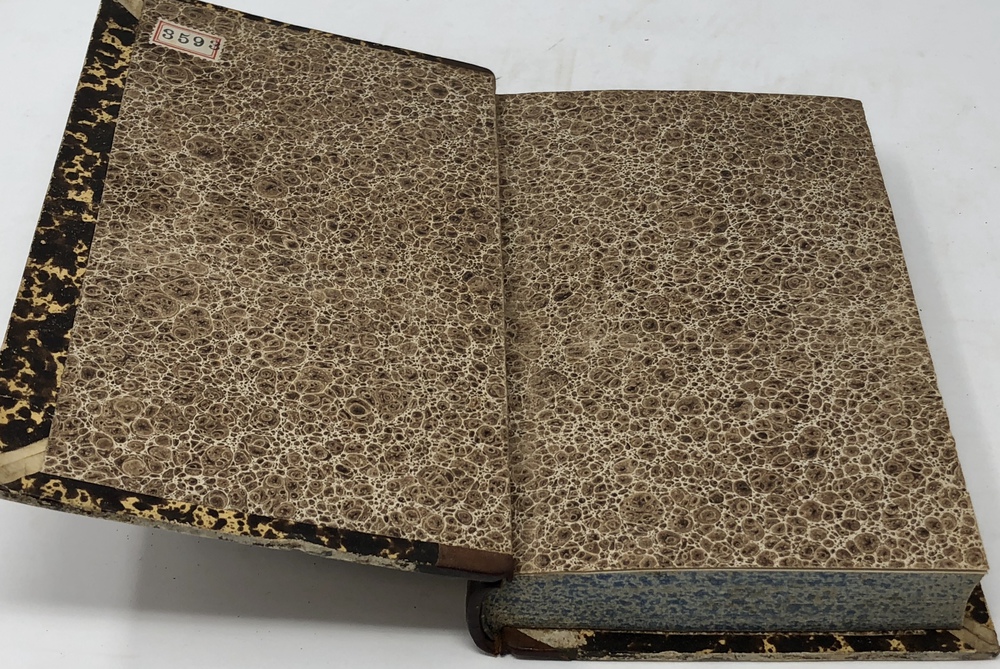Contemporary half calf on marble boards.