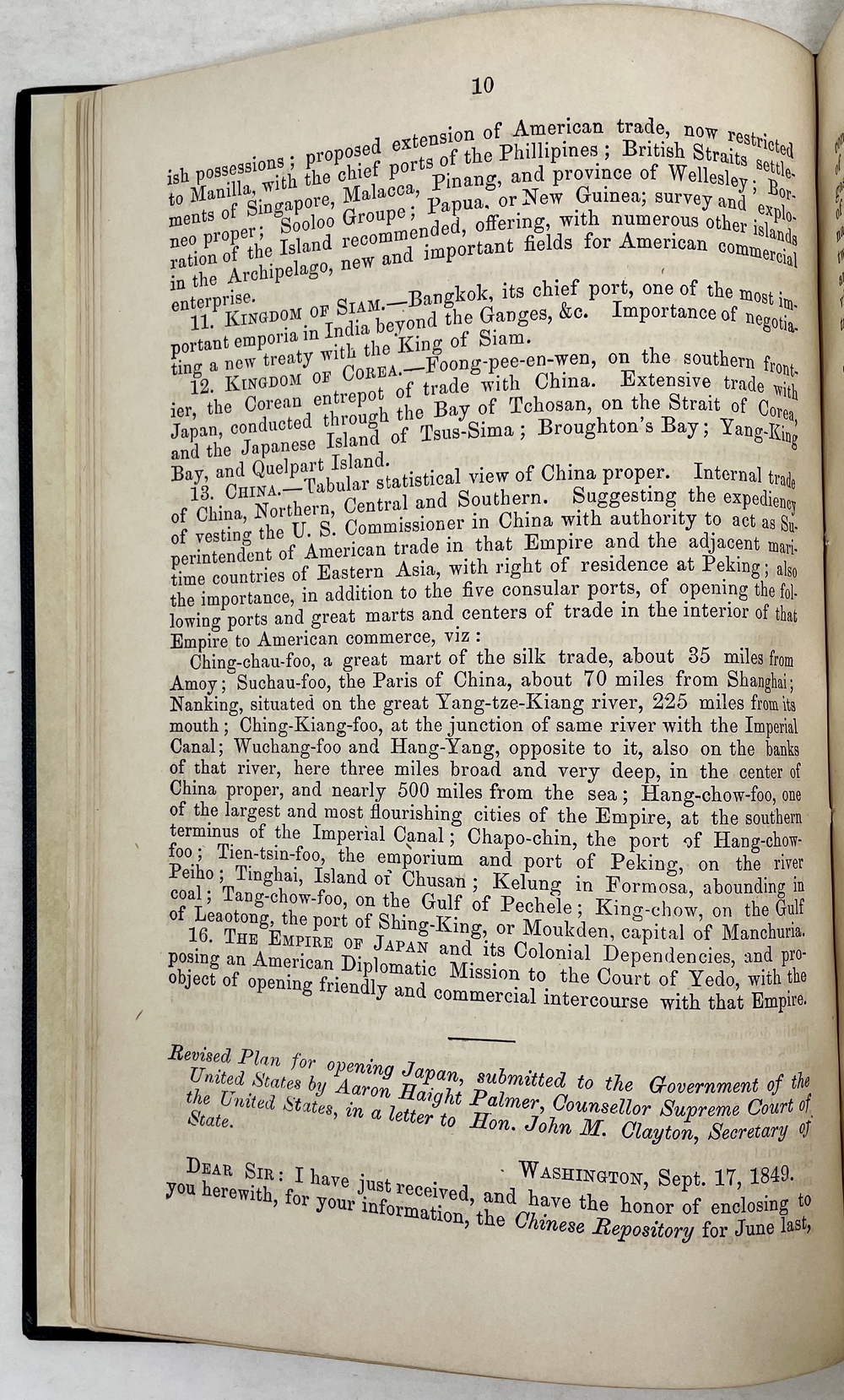 including his Revised Plan for opening Japan, addressed to Mr. Clayton on the 17th September, 1849;