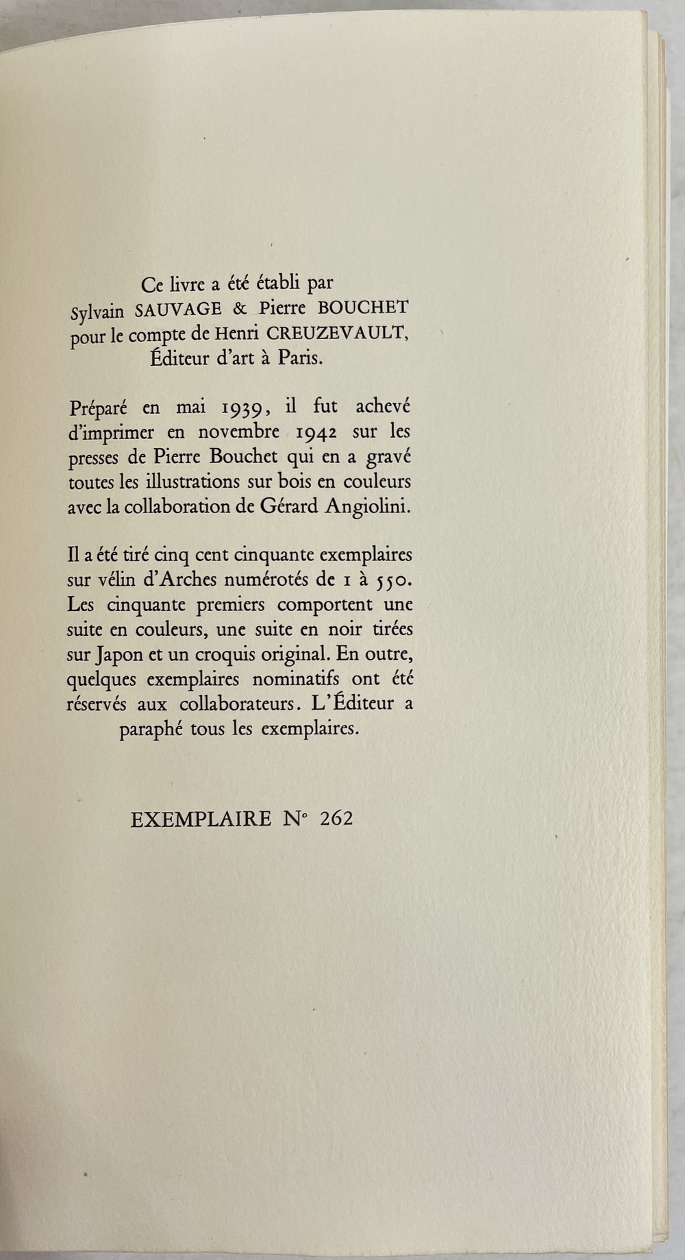 550部限定版(内262番)、装丁家による特装本、特製スリップケースとカバー付き 1942年 パリ刊