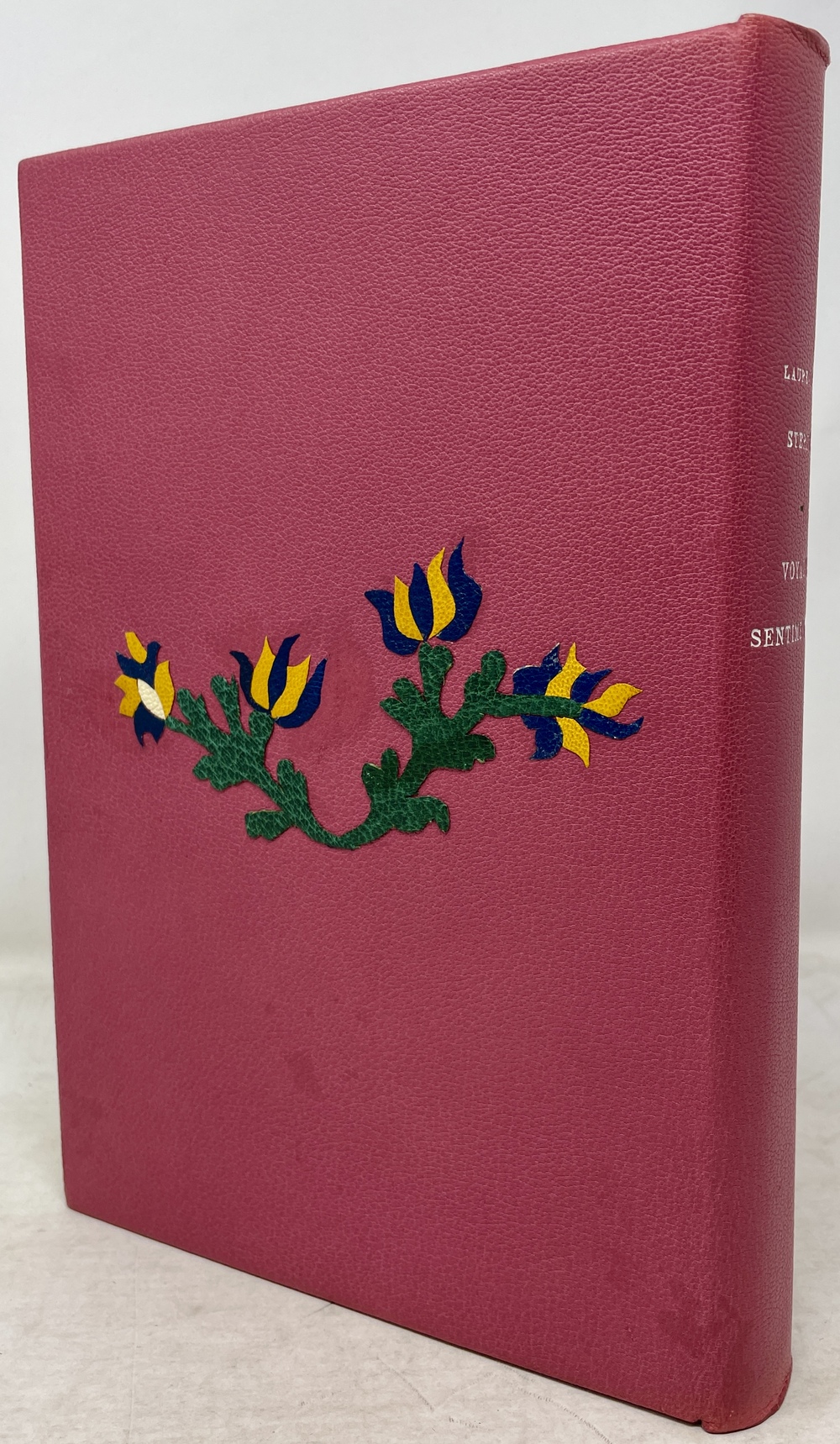 Specially bound in pink leather with a card board cover and a slip case.